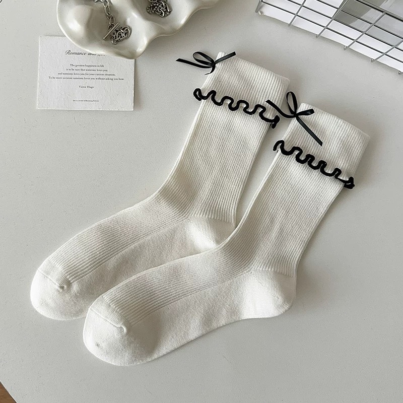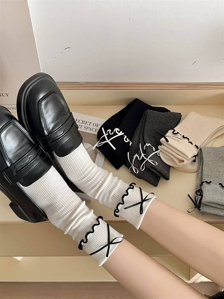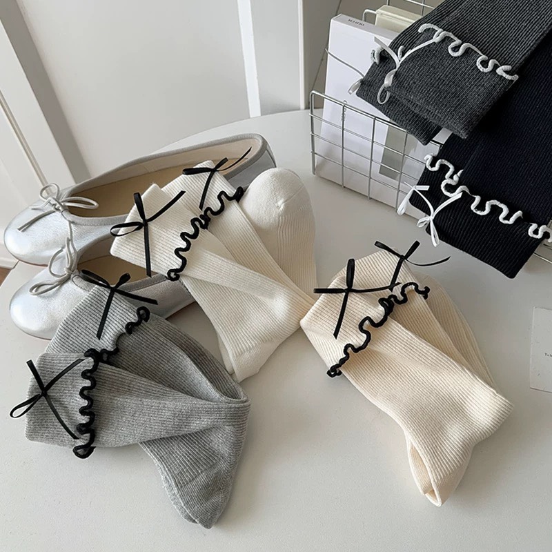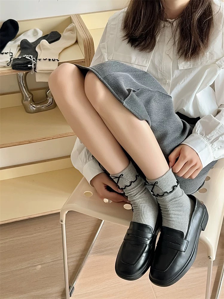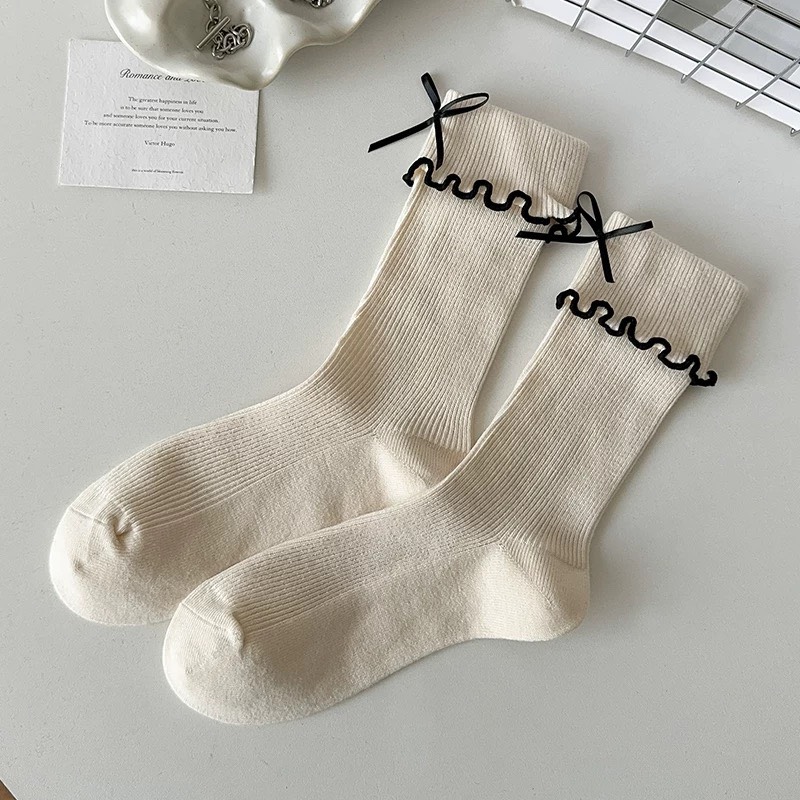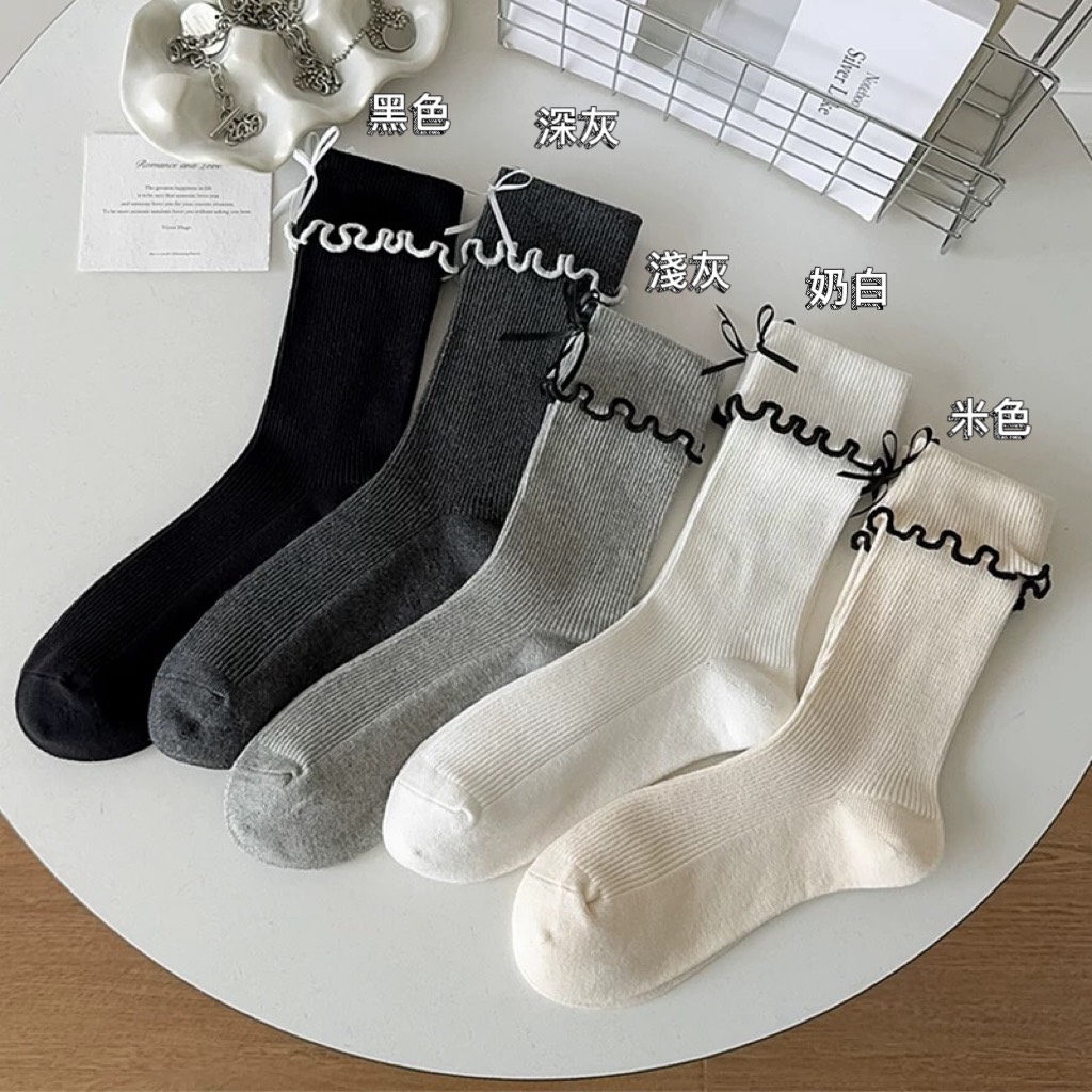 日系木耳邊蝴蝶結翻口中筒襪~滿滿少女心~組合價賣場任選3雙200
