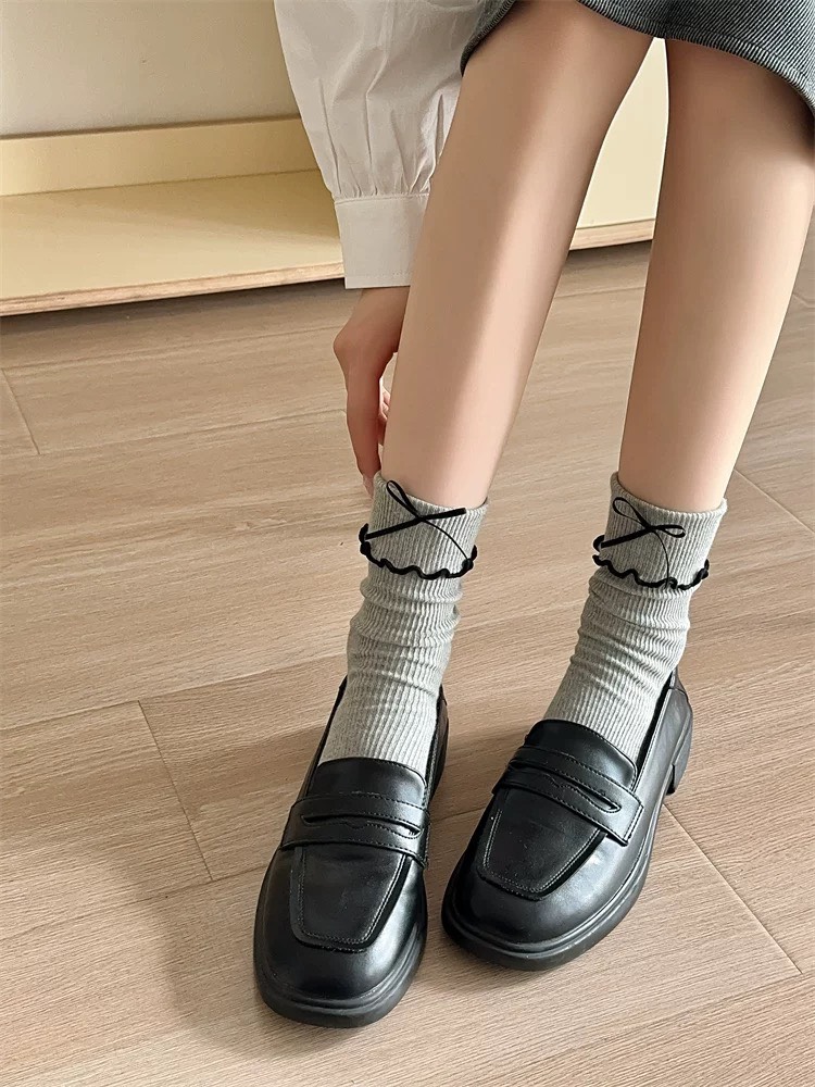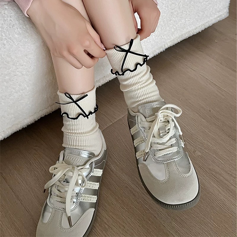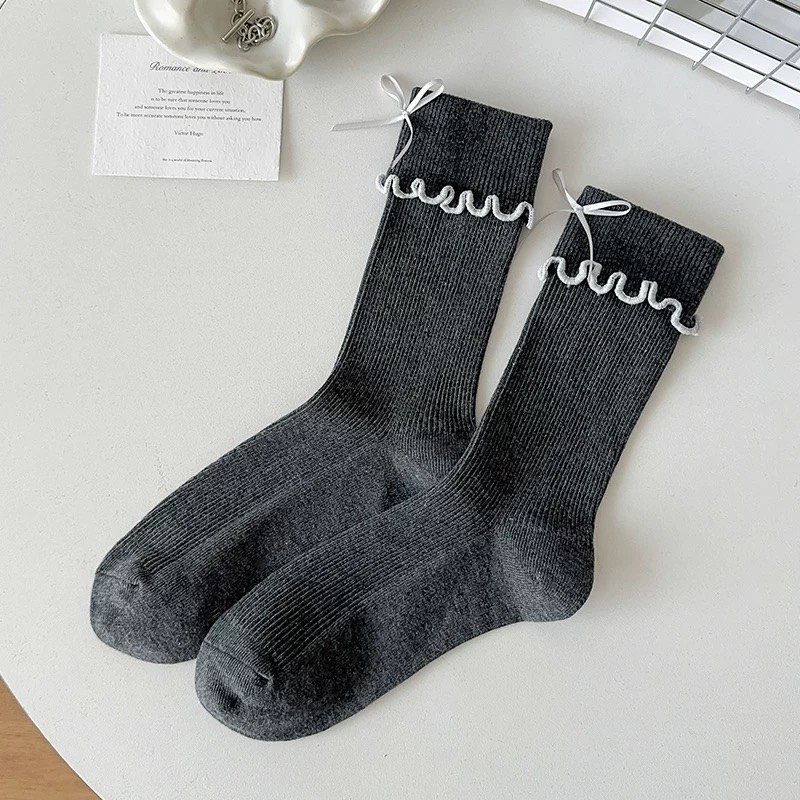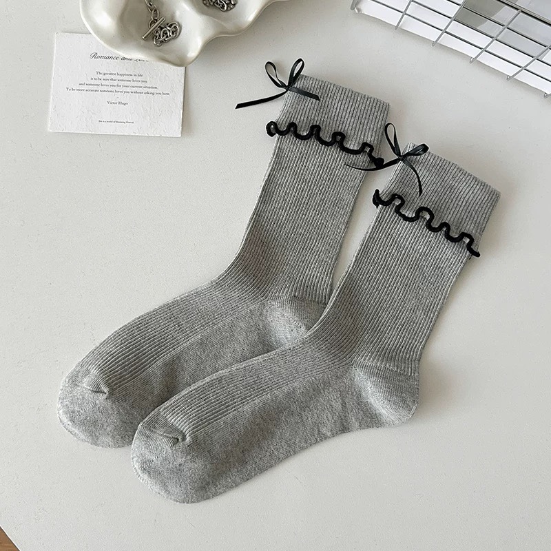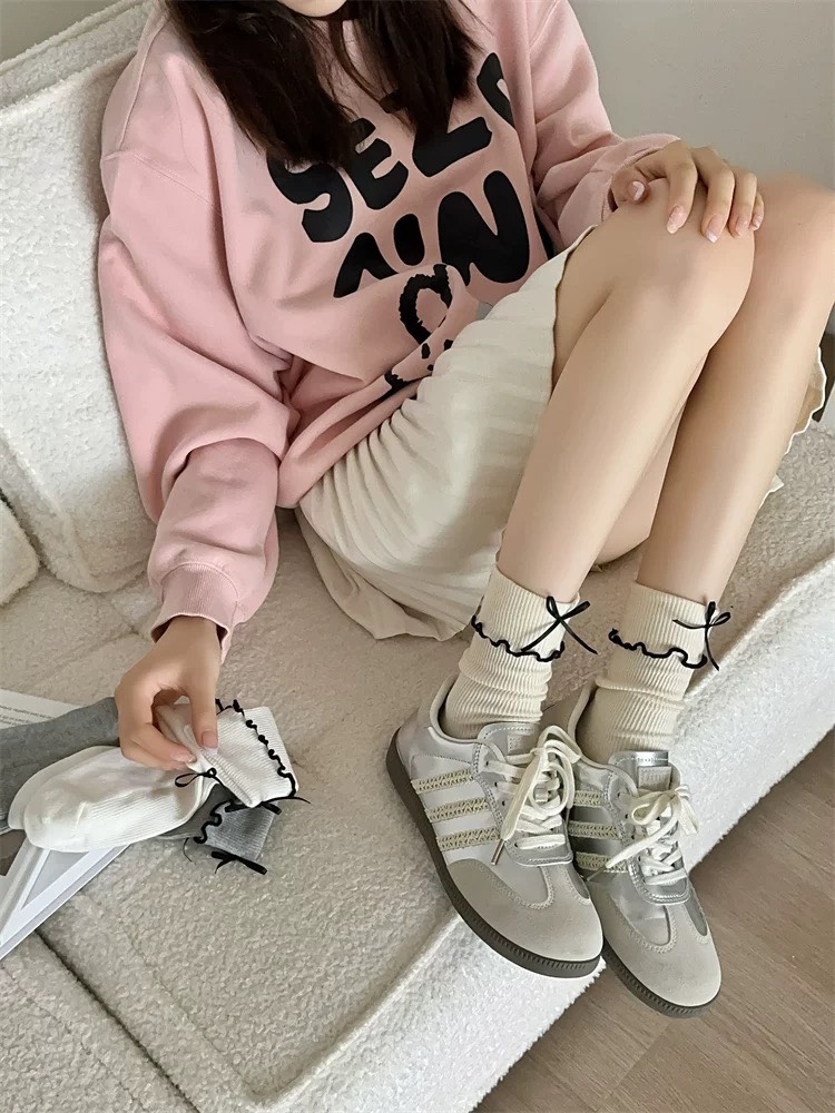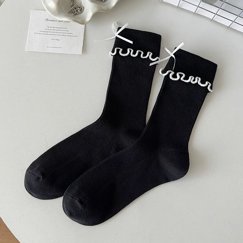 日系木耳邊蝴蝶結翻口中筒襪~滿滿少女心~組合價賣場任選3雙200