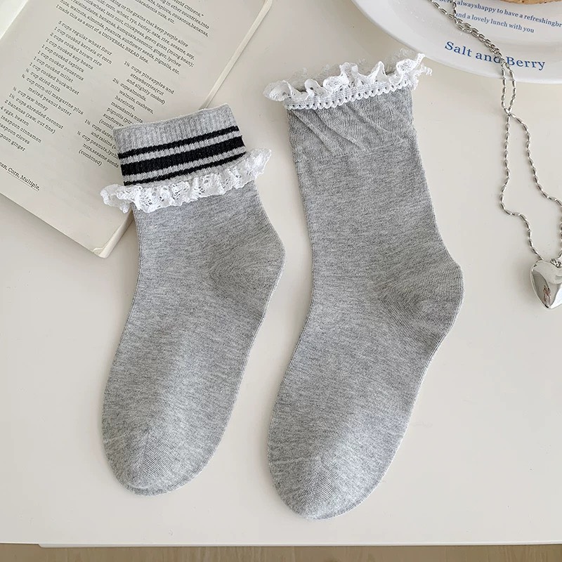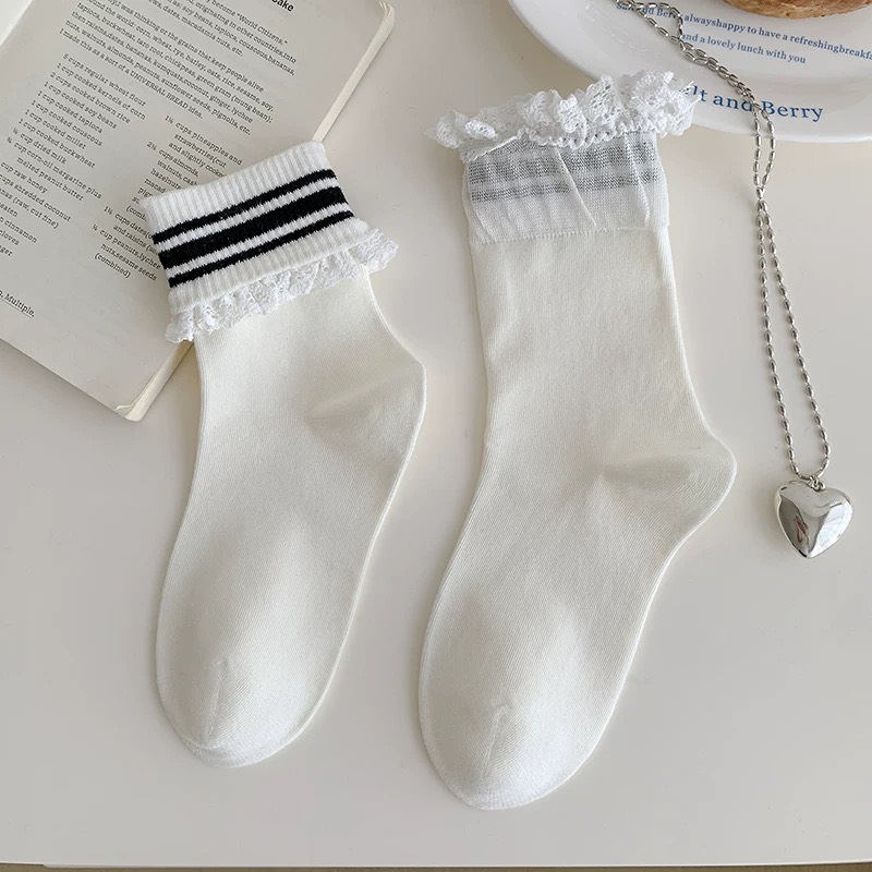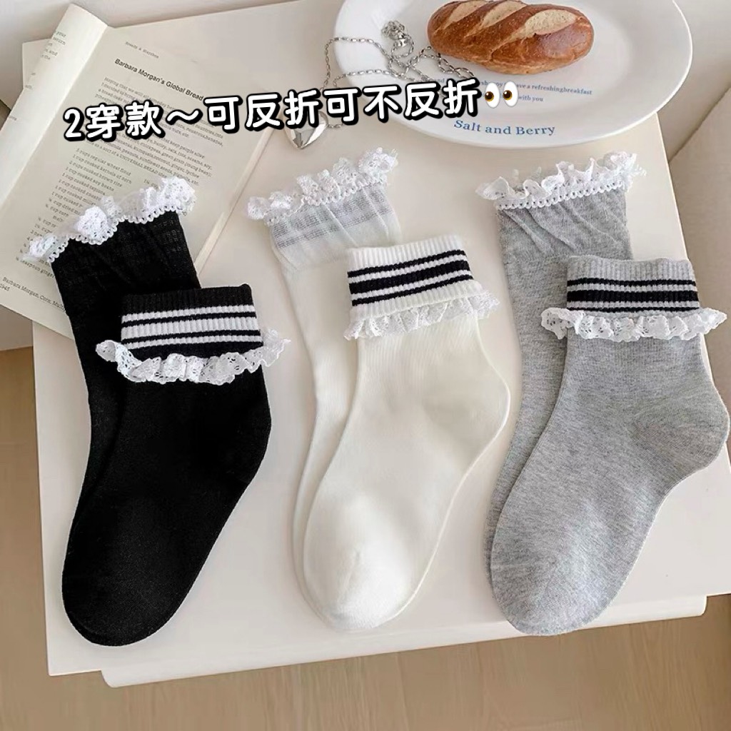 韓國時尚邊緣翻轉學院風兩穿中筒襪~組合價賣場任選3雙200