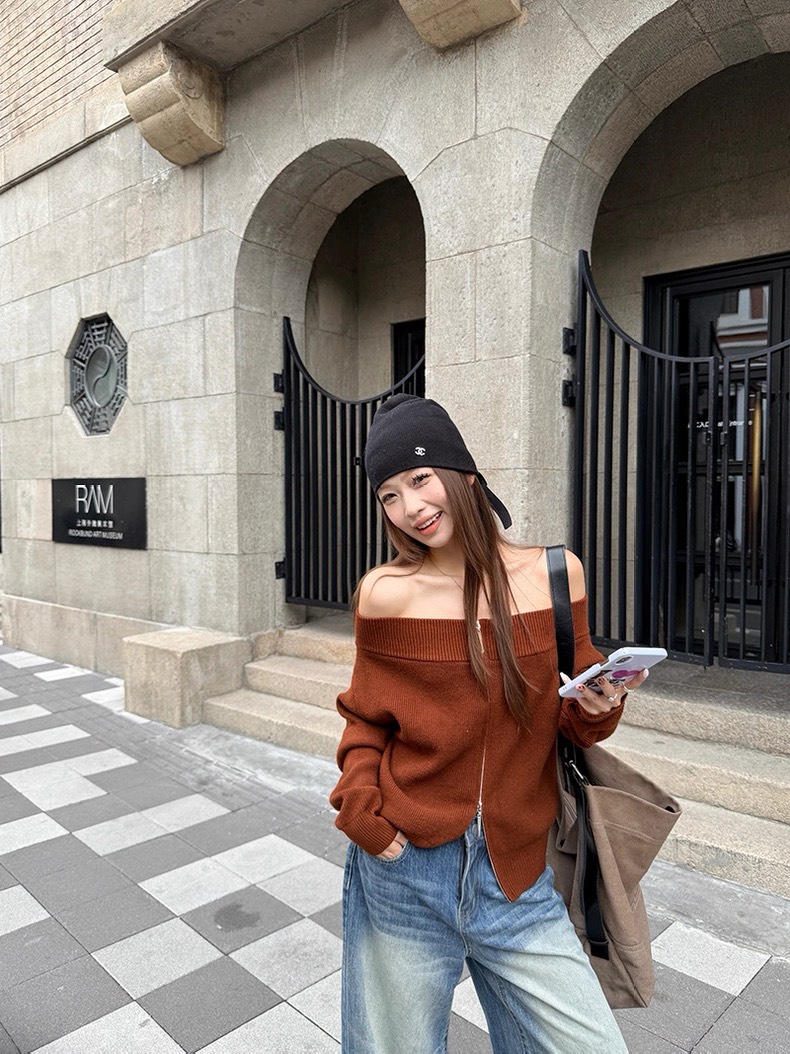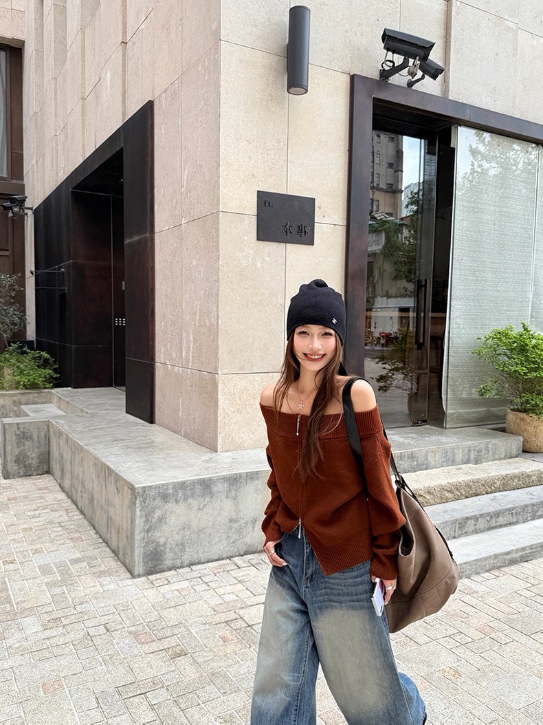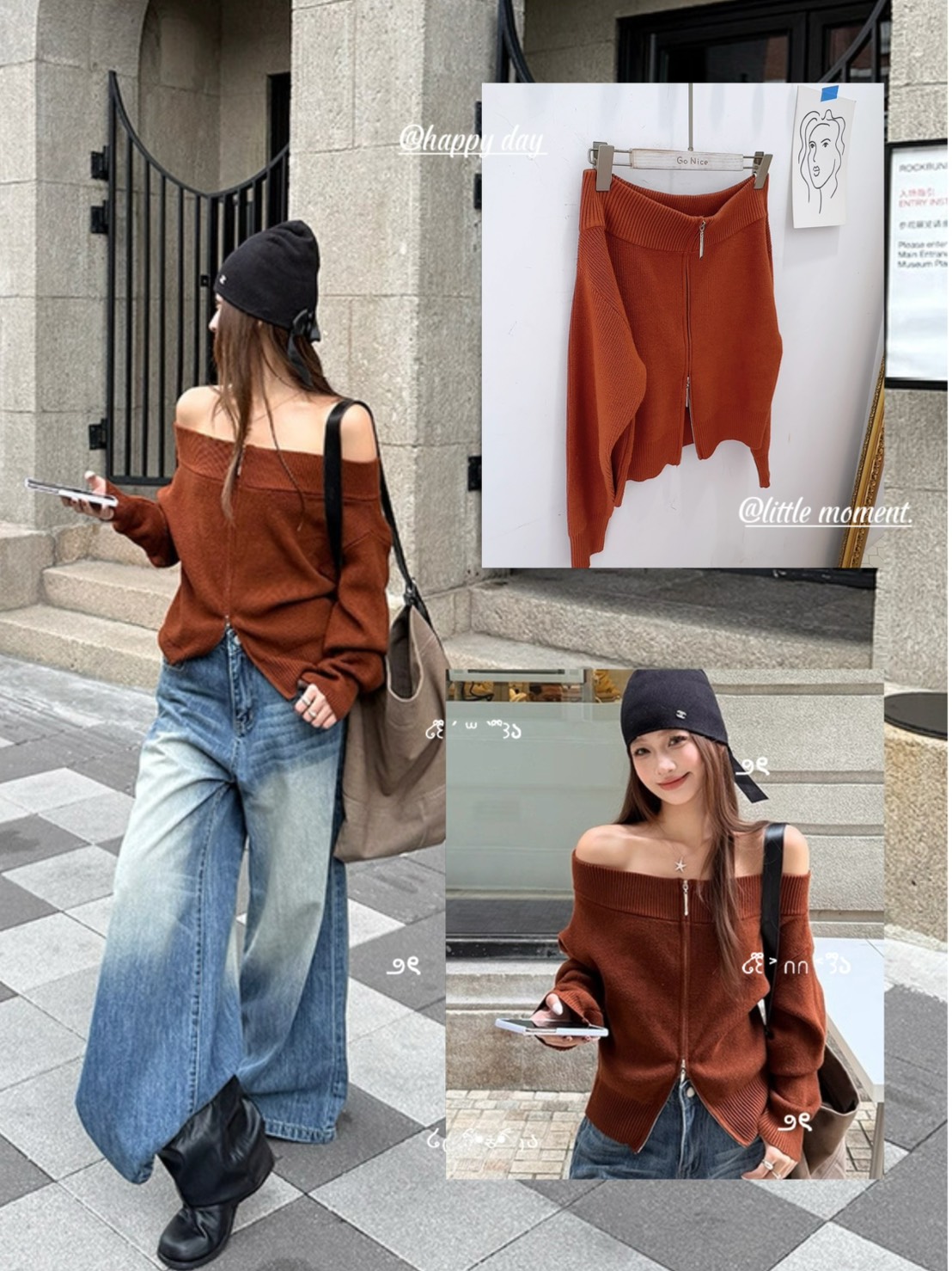 超顯鎖骨 氣質又帶點小性感一字領針織