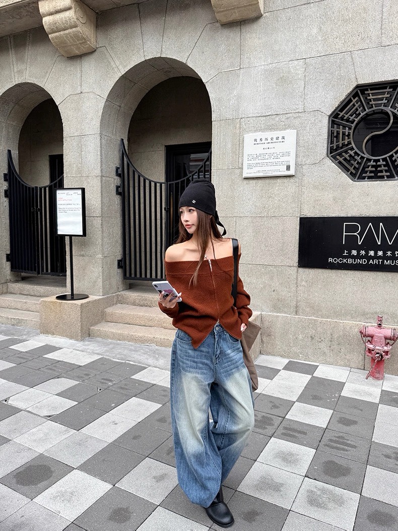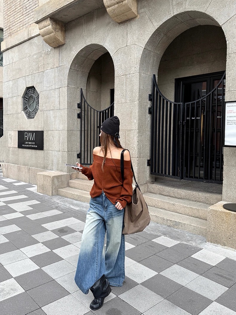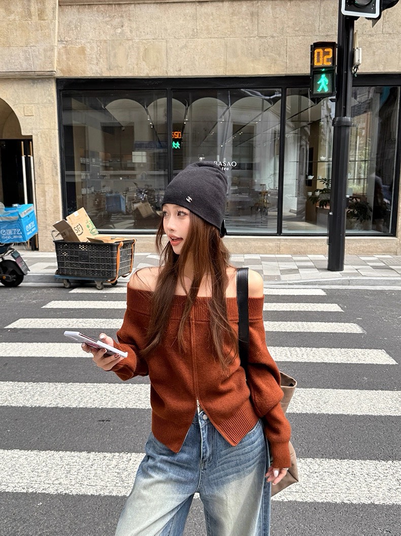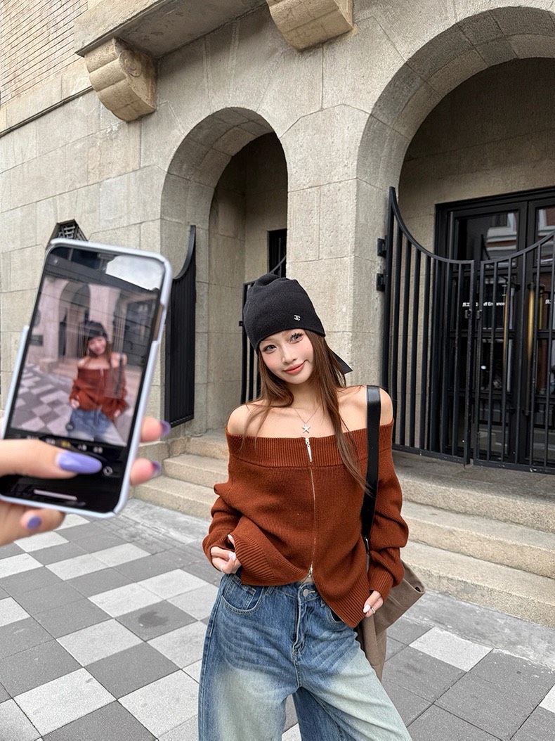 超顯鎖骨 氣質又帶點小性感一字領針織
