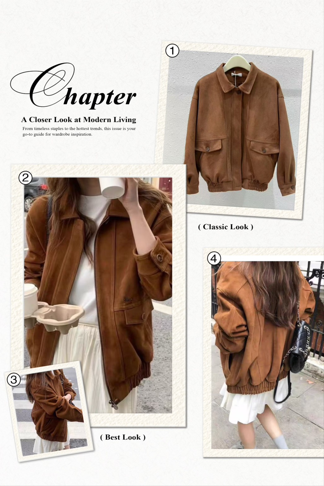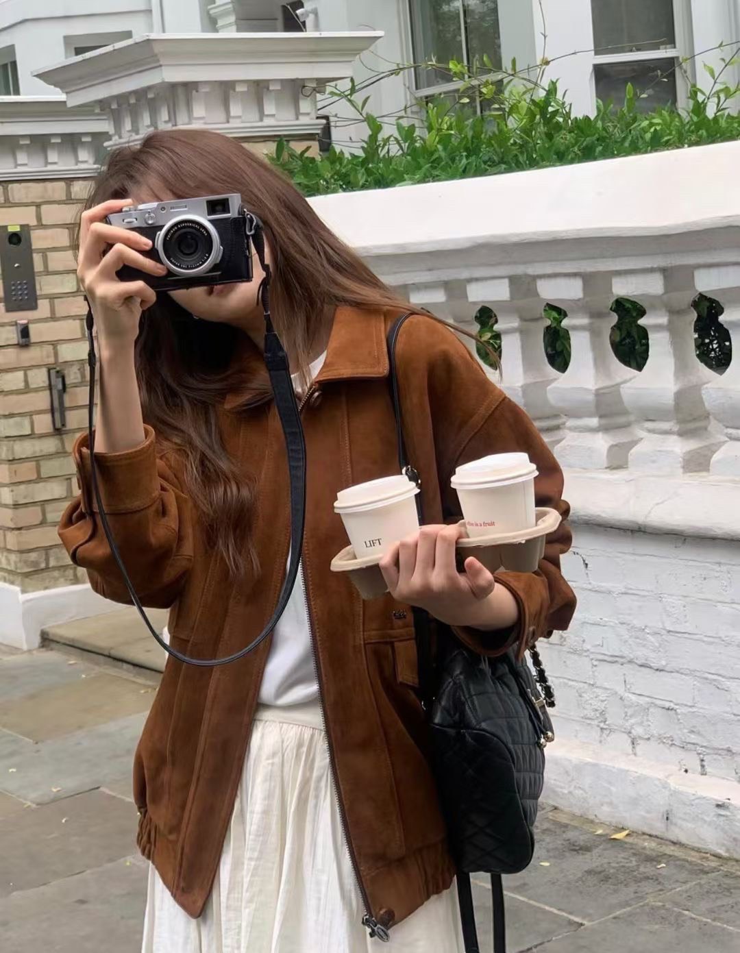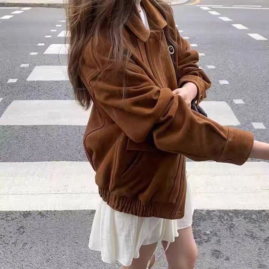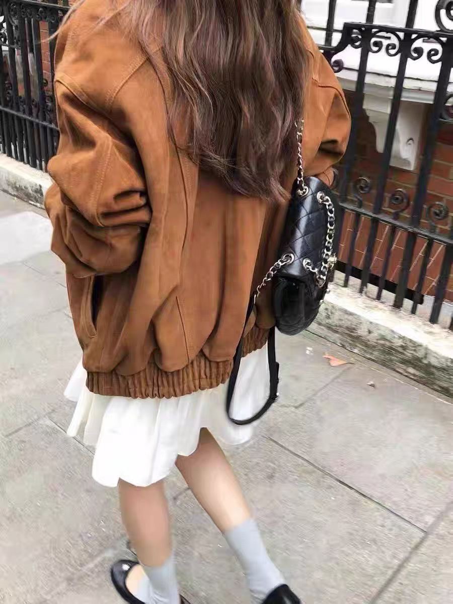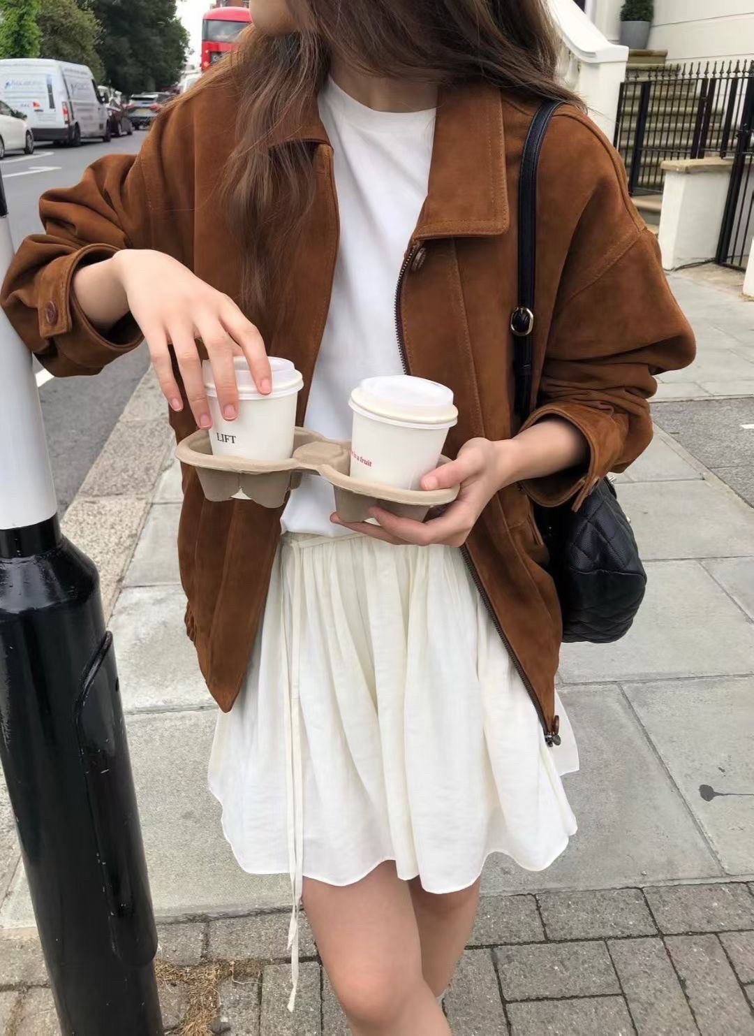 低調又耐看的咖啡棕色,整件是細緻的麂皮感材質
