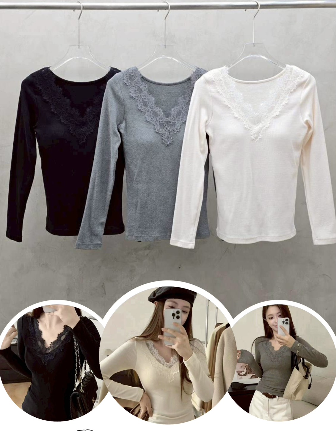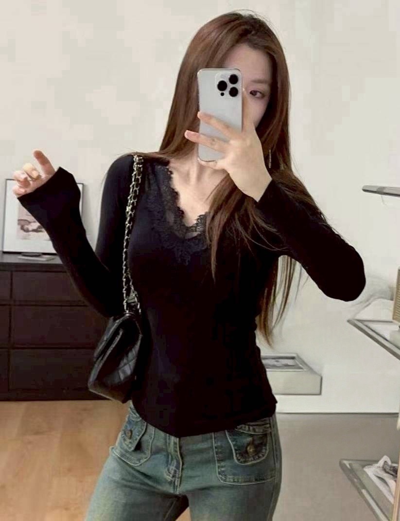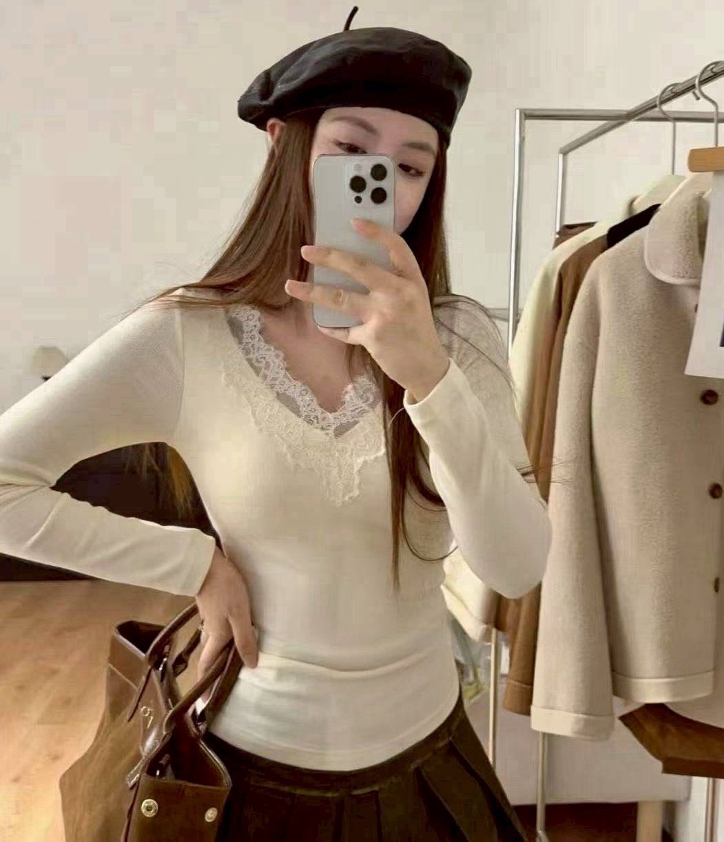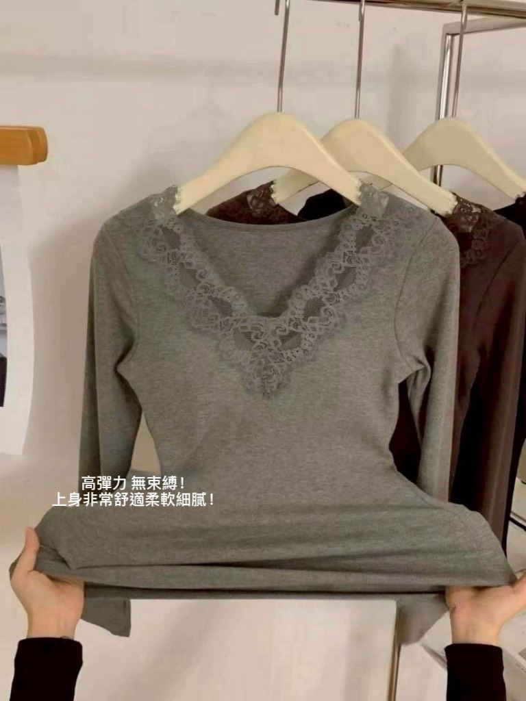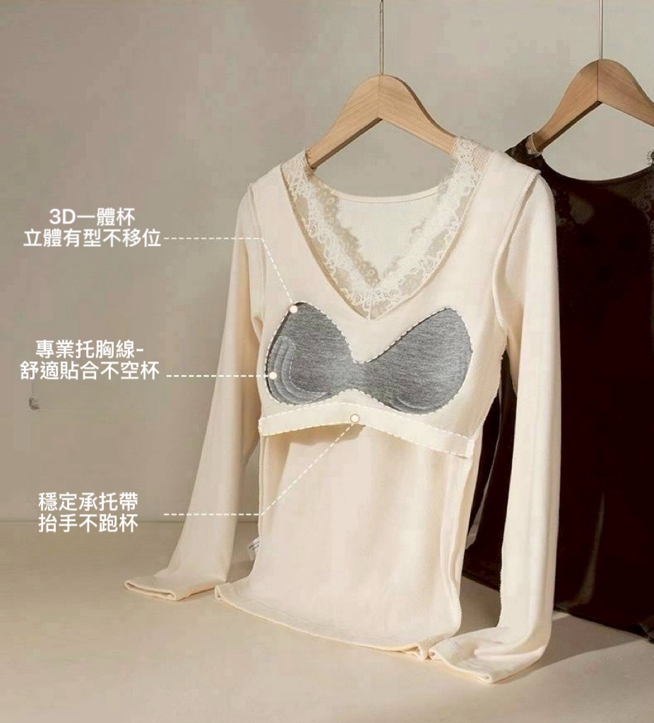 不跑杯~拼蕾絲磨毛棉罩杯上衣