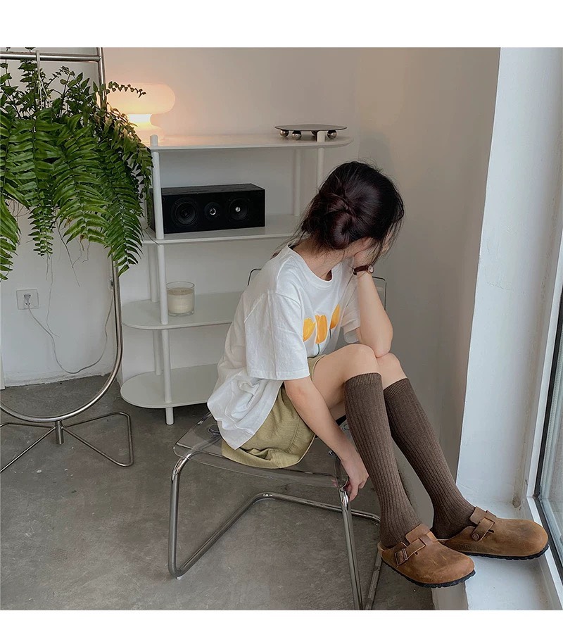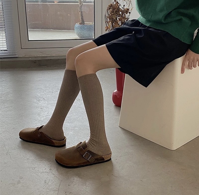 純色及膝小腿襪