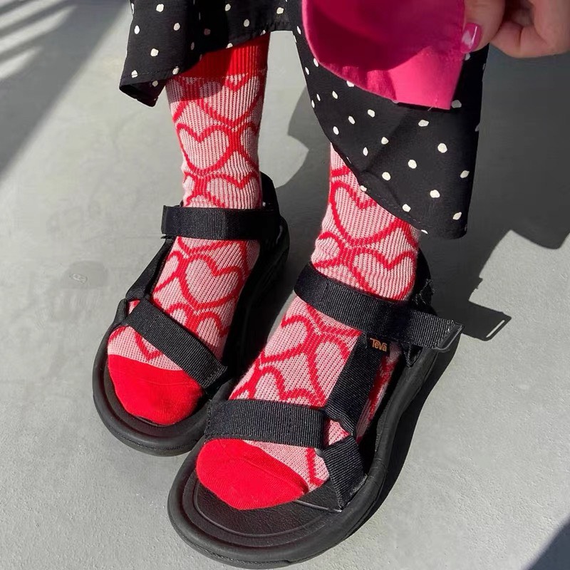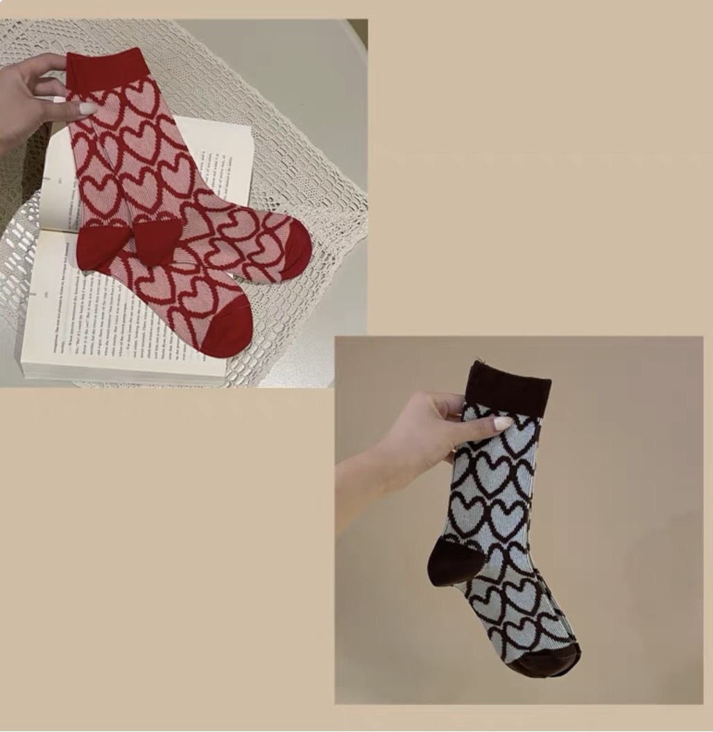 JK風甜美愛心復古中筒襪