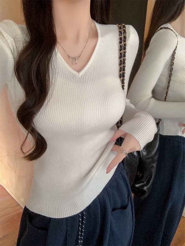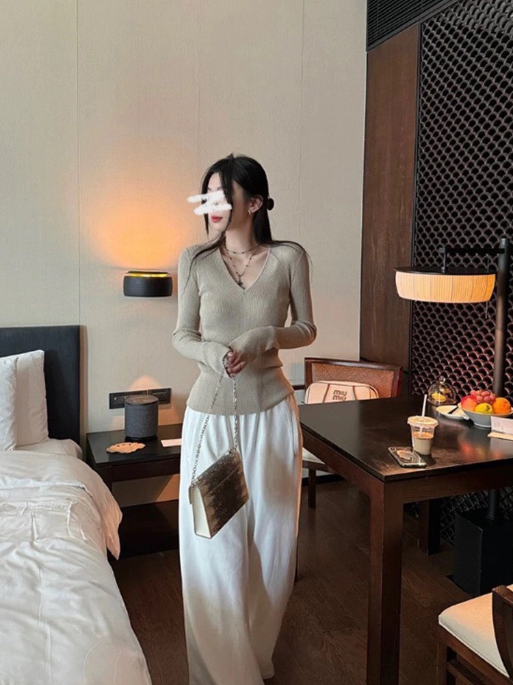 V領設計露出鎖骨,溫柔又帶點小性感
