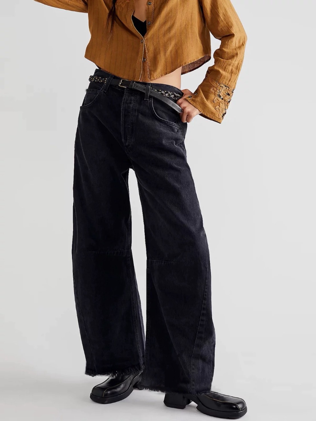 腰部、臀部開始向外擴張,在膝蓋處達到最寬,最後在腳踝處微縮