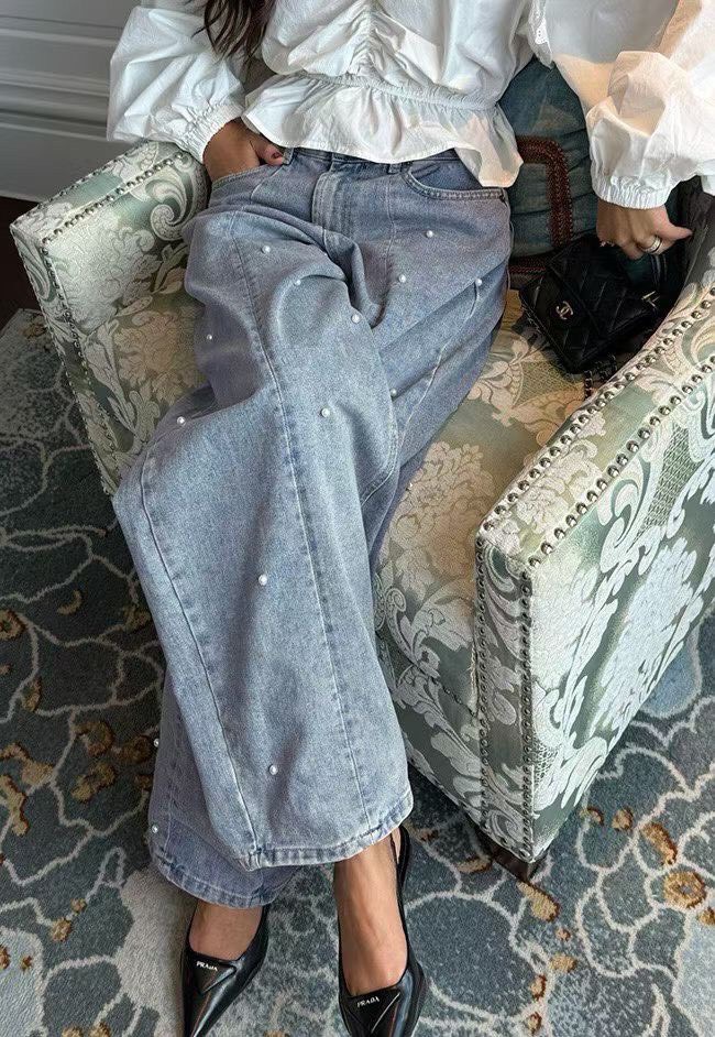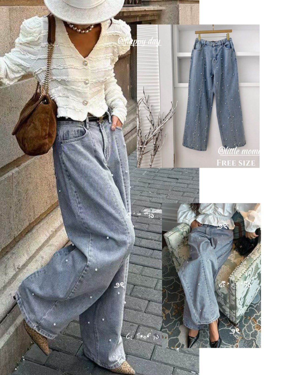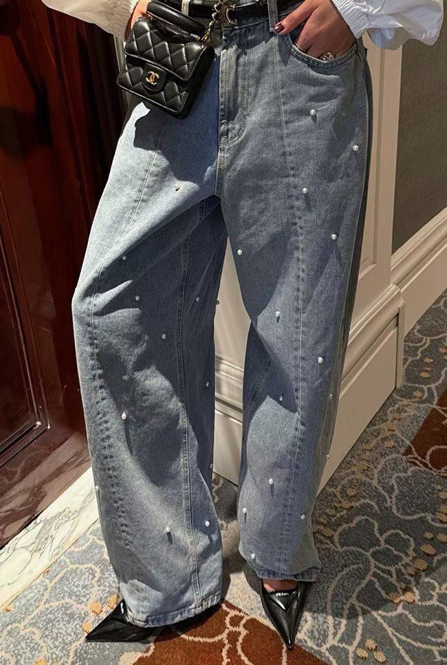 褲身做了珍珠鉚釘點點裝飾,牢固不易掉,低調又亮眼