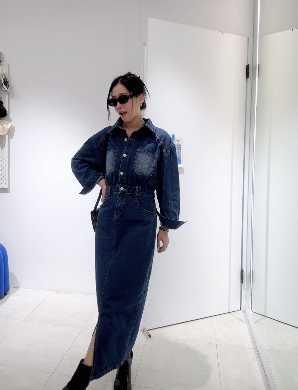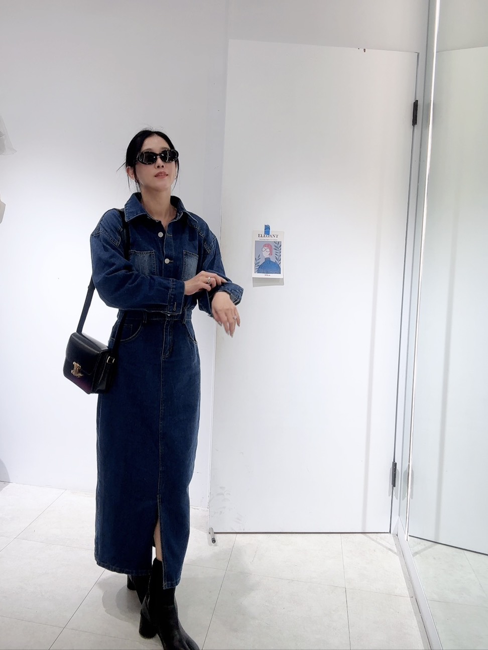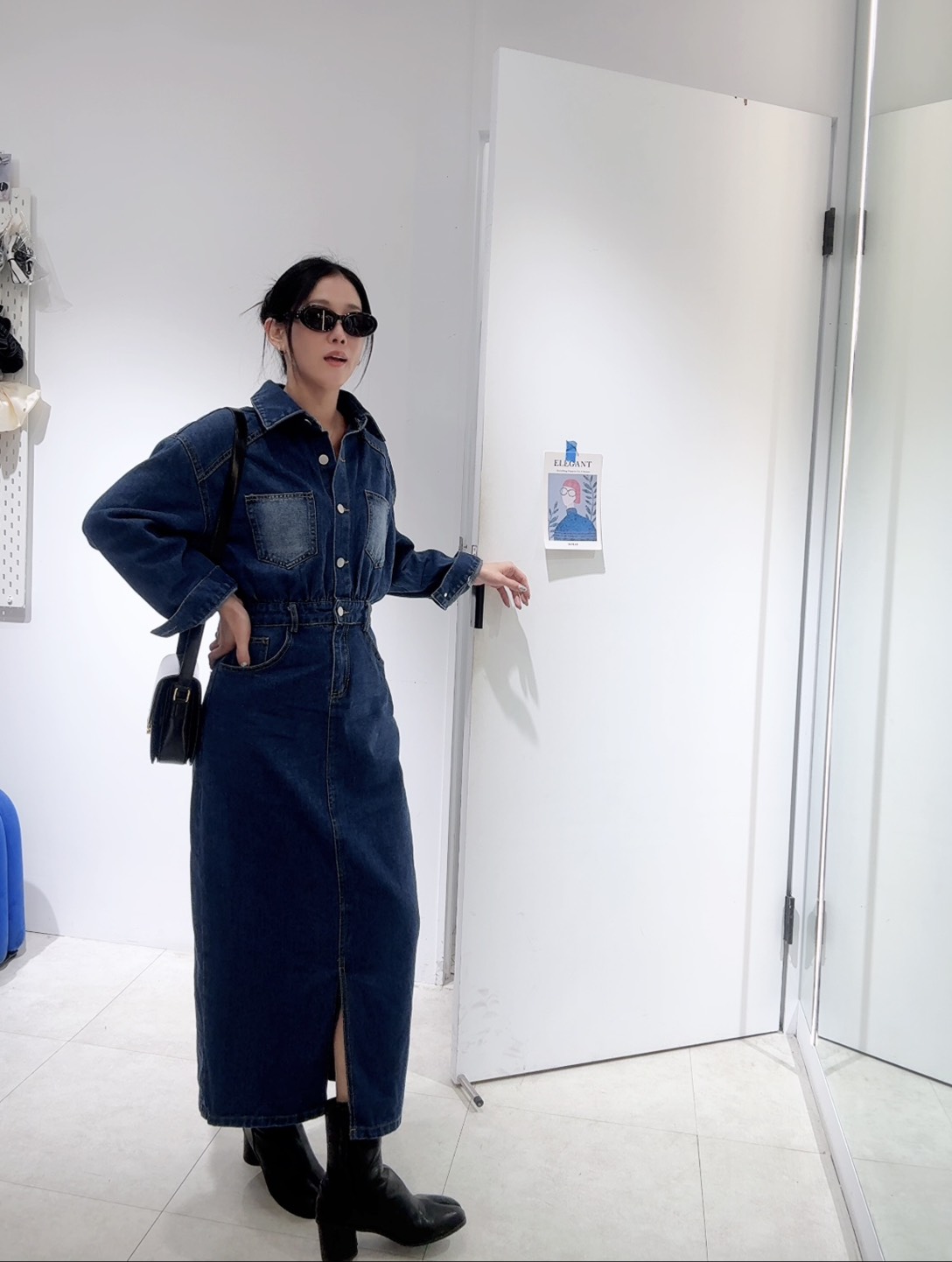 能拉高腰線,中和了牛仔布料的厚重感,展現出身材比例