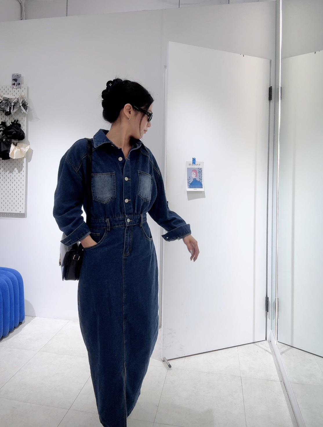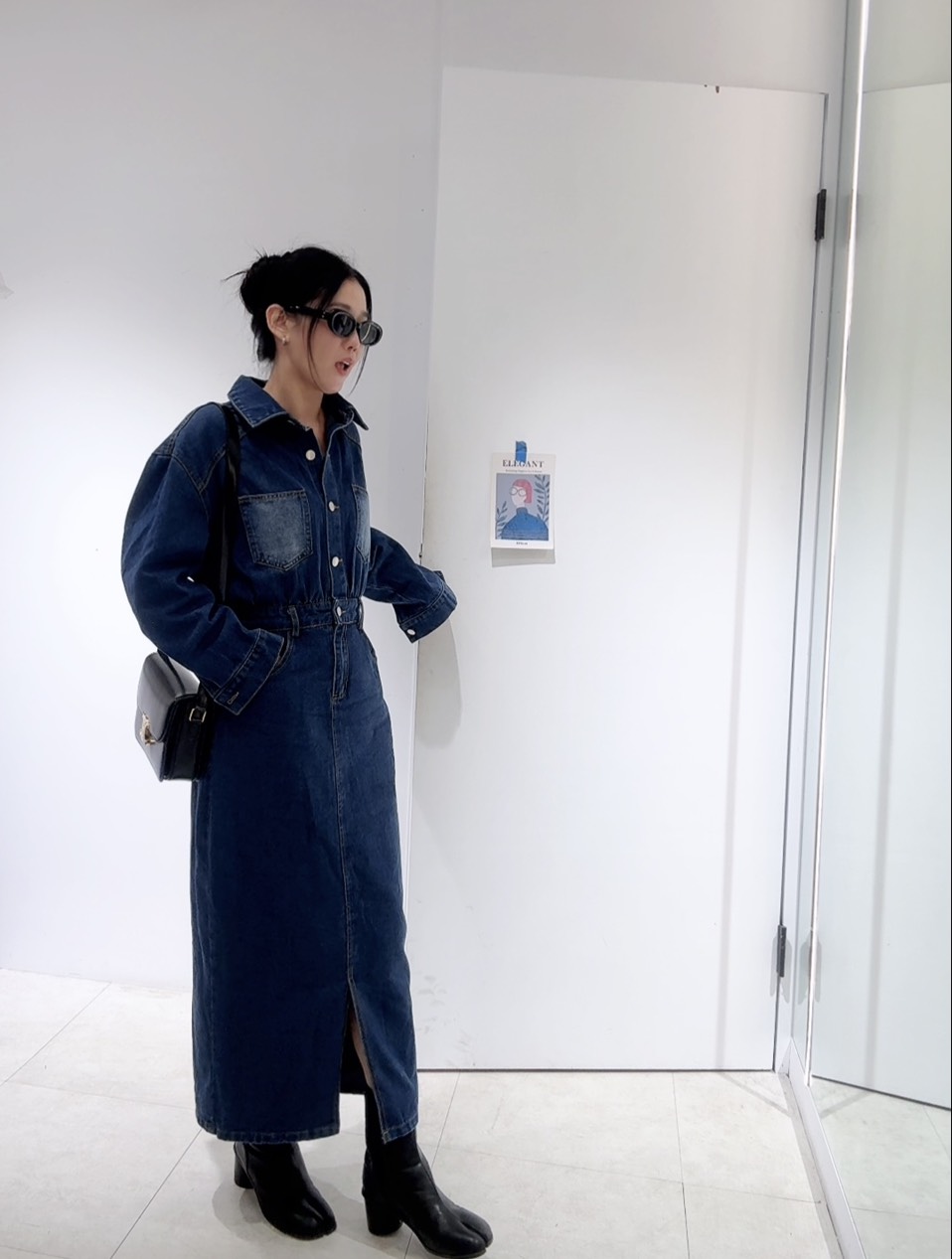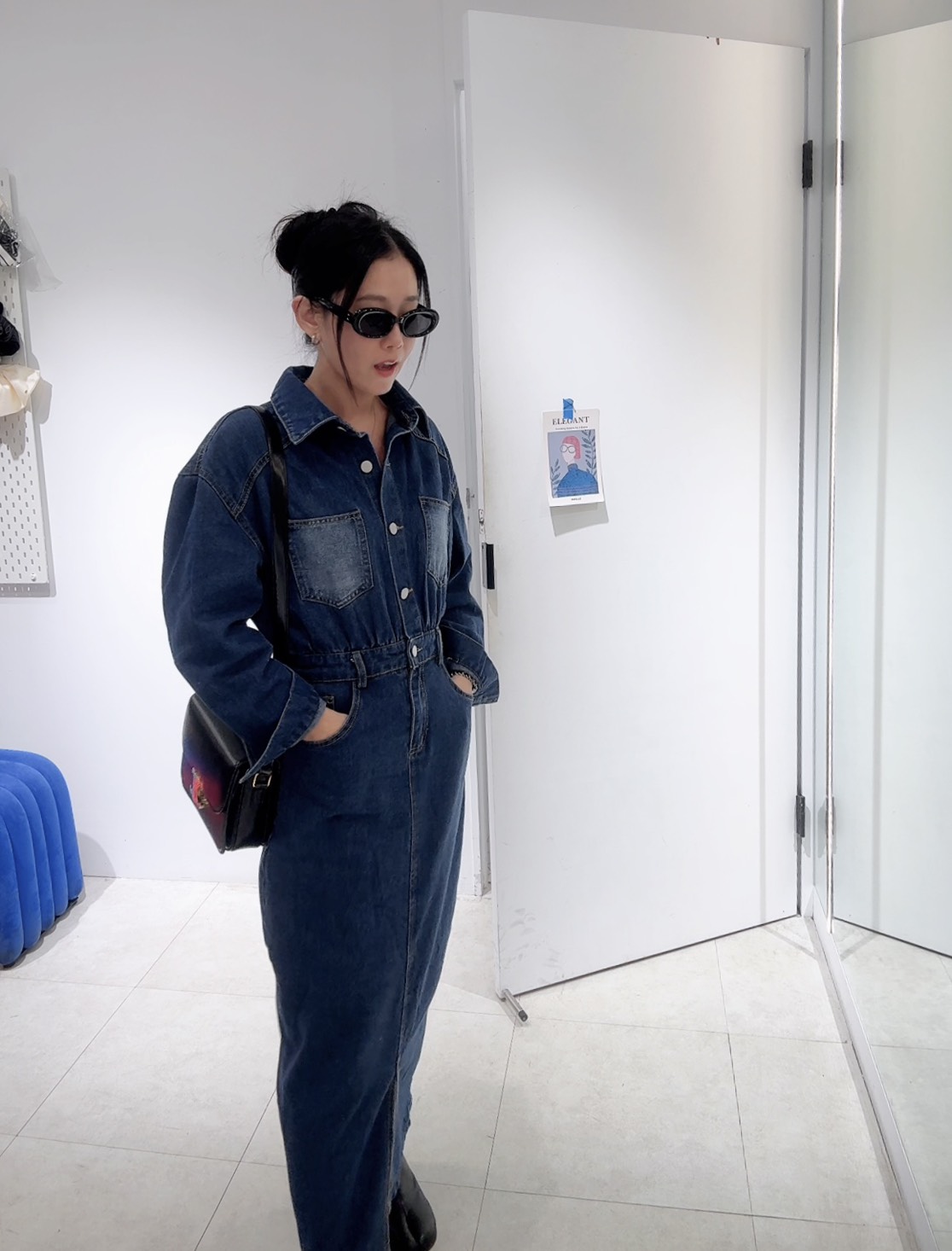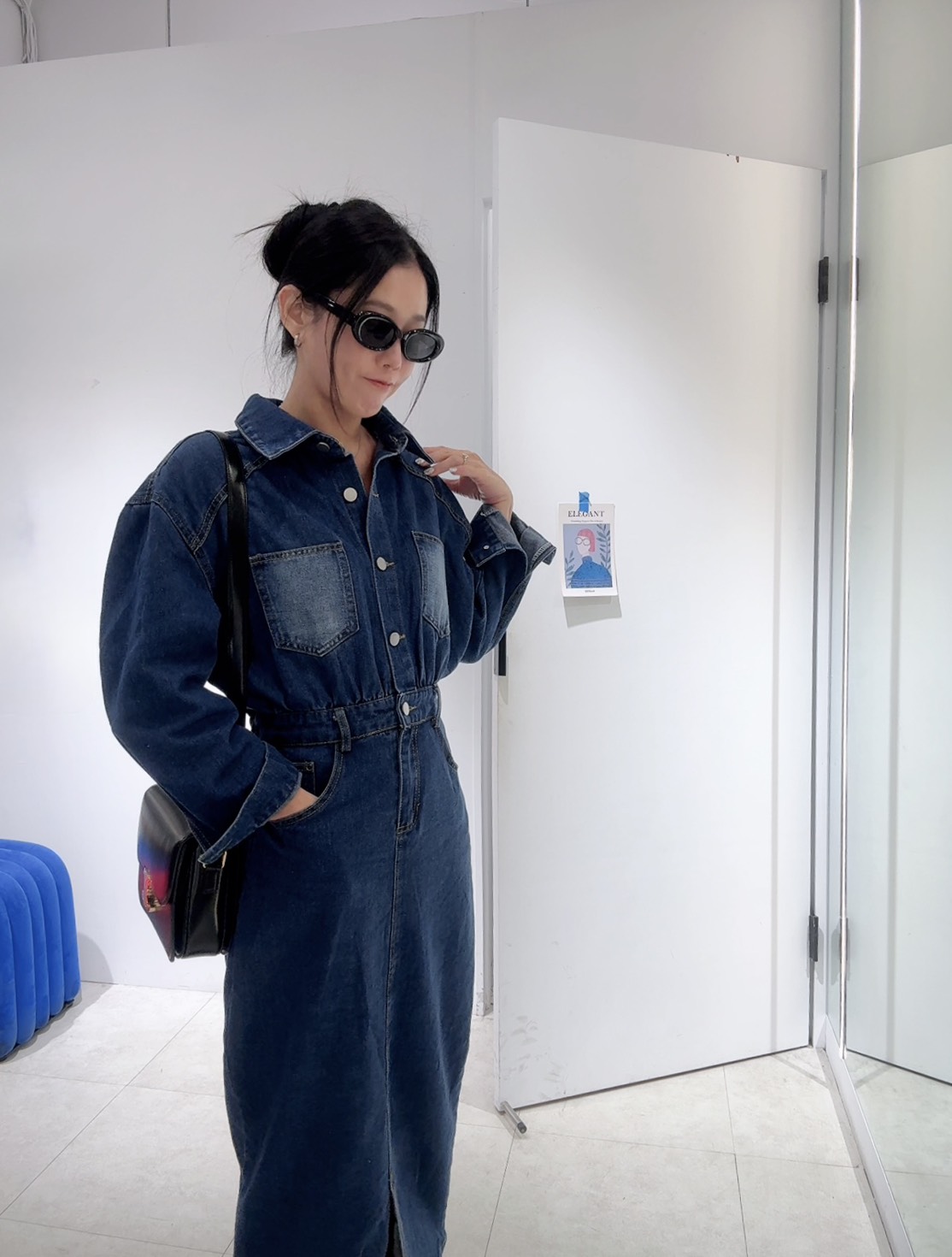 能拉高腰線,中和了牛仔布料的厚重感,展現出身材比例