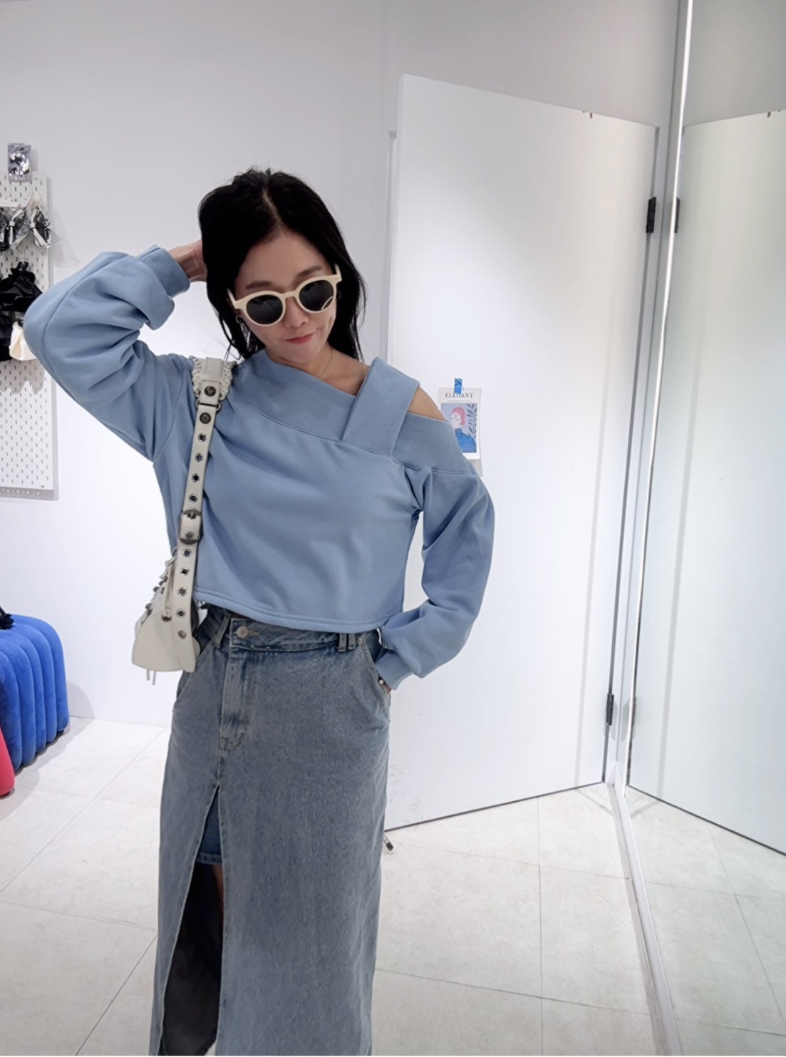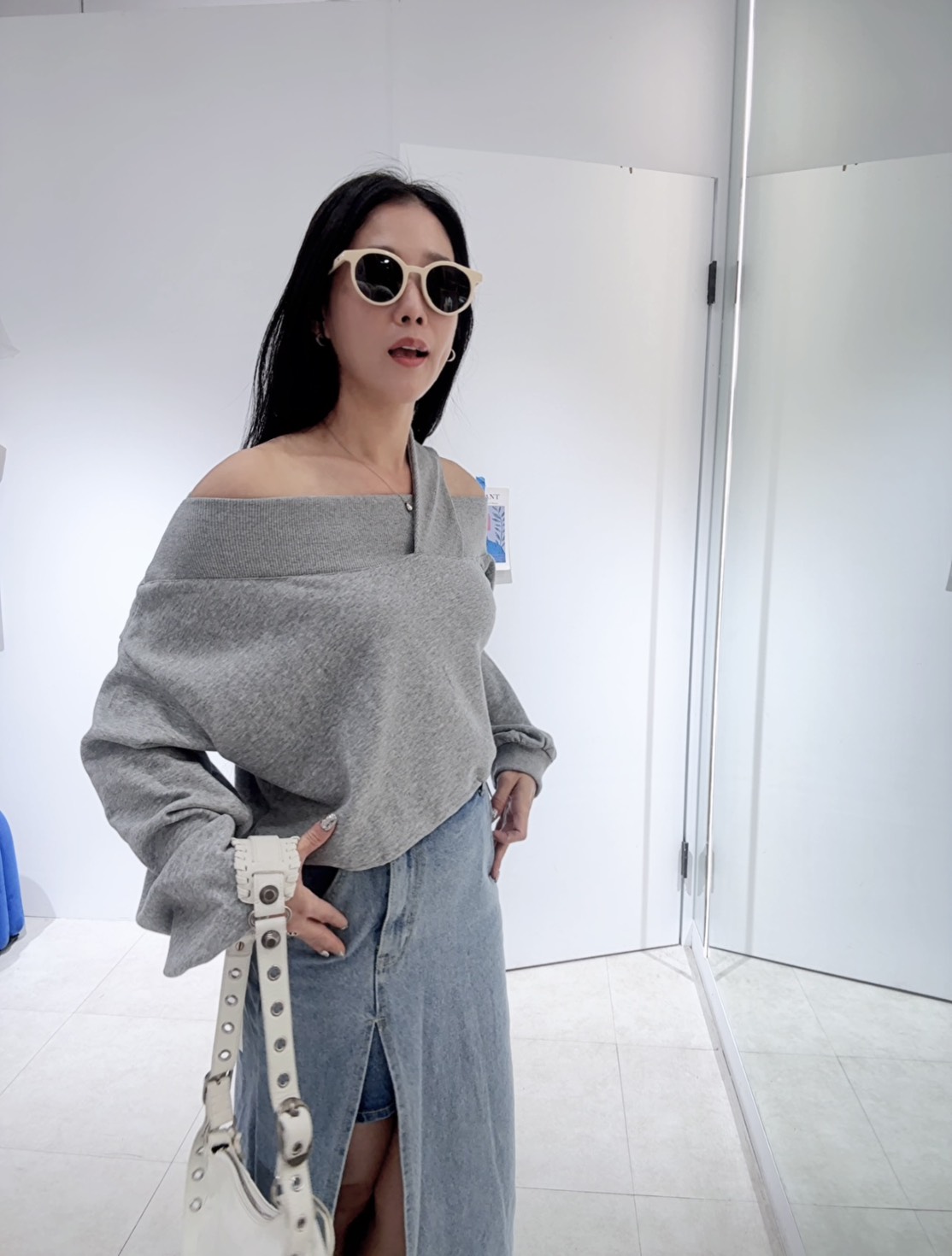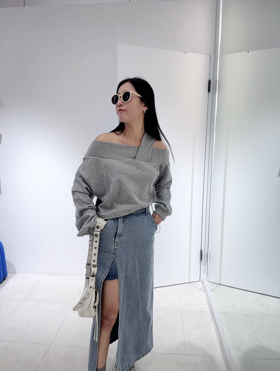 營造出斜肩露鎖骨的效果