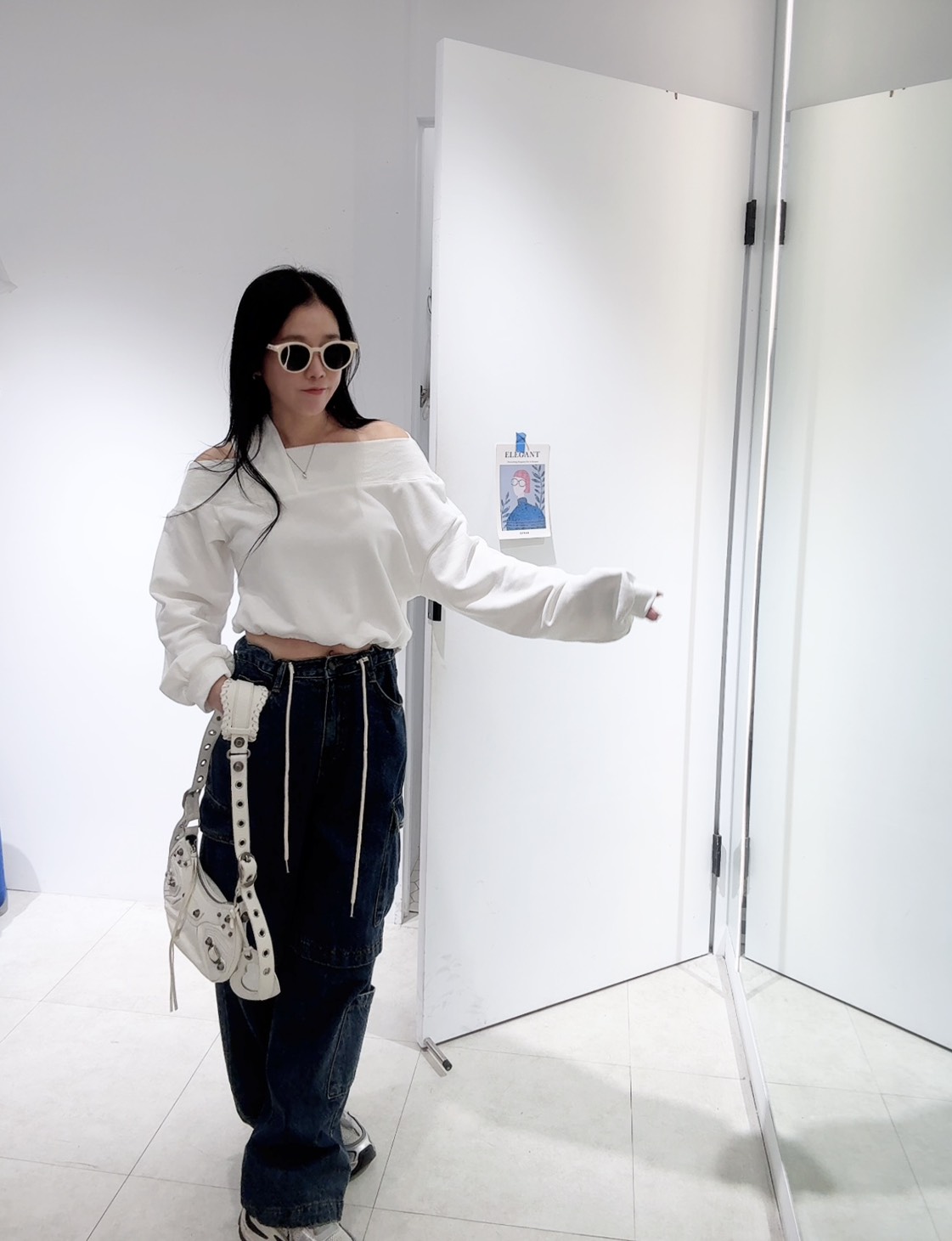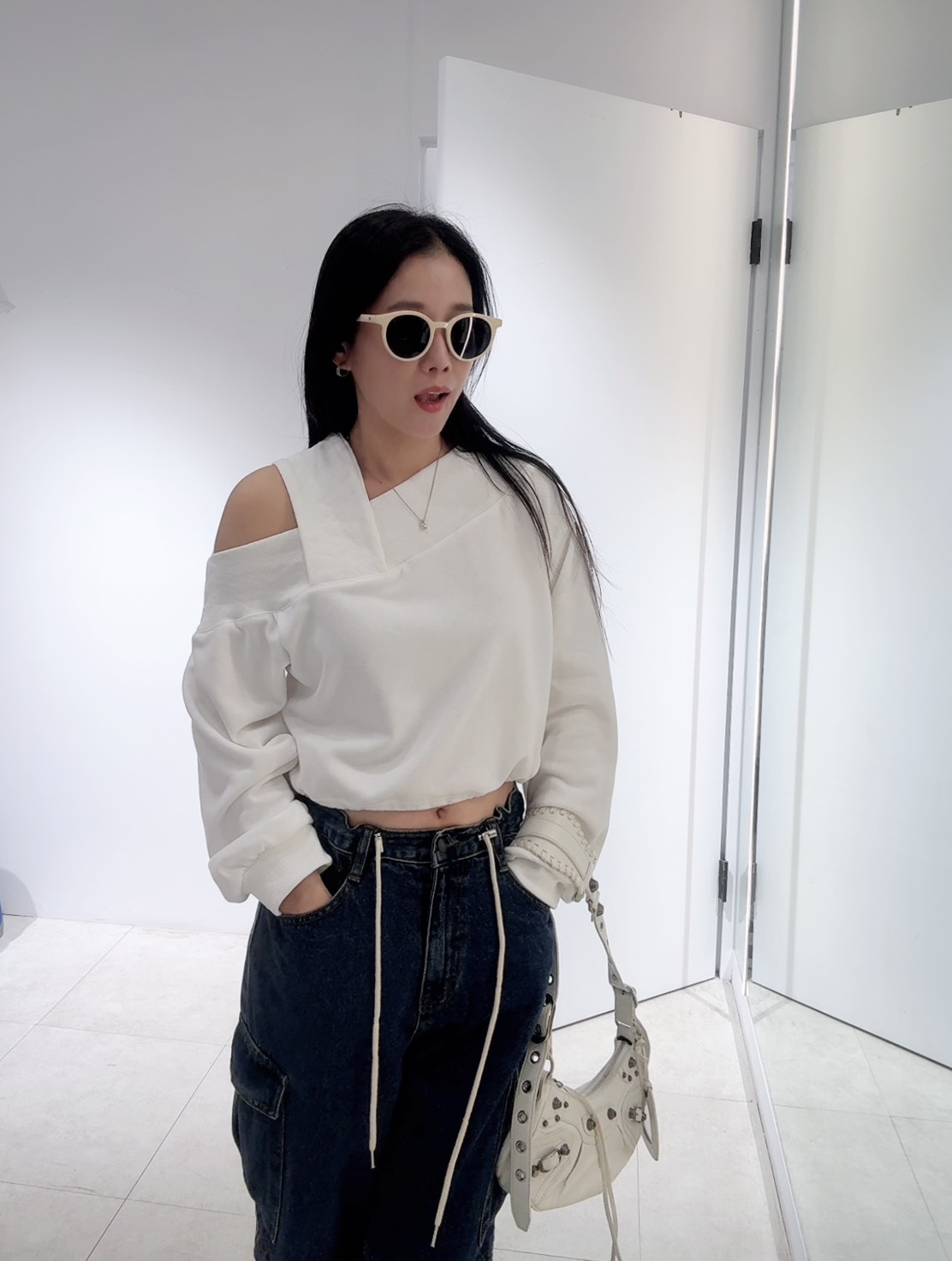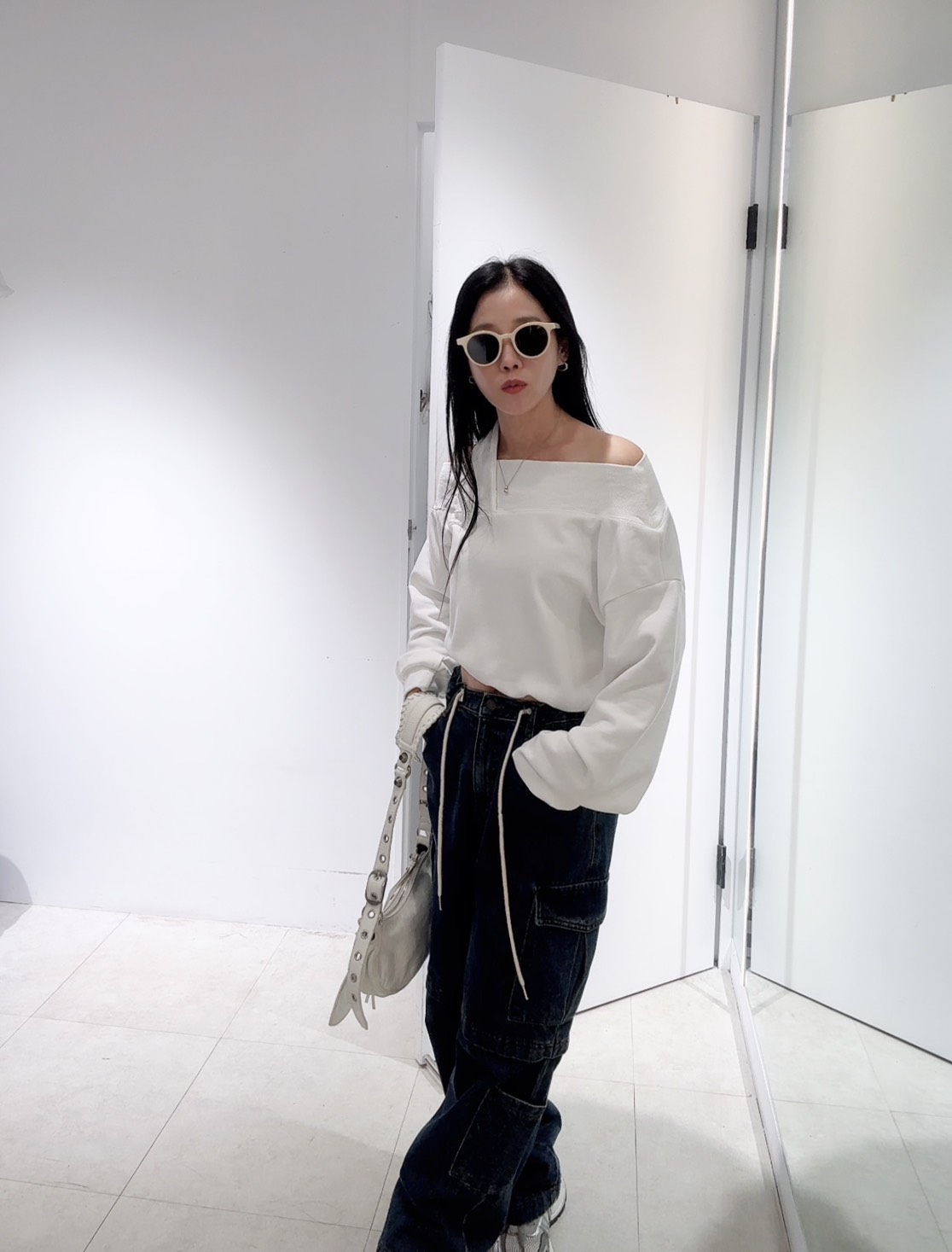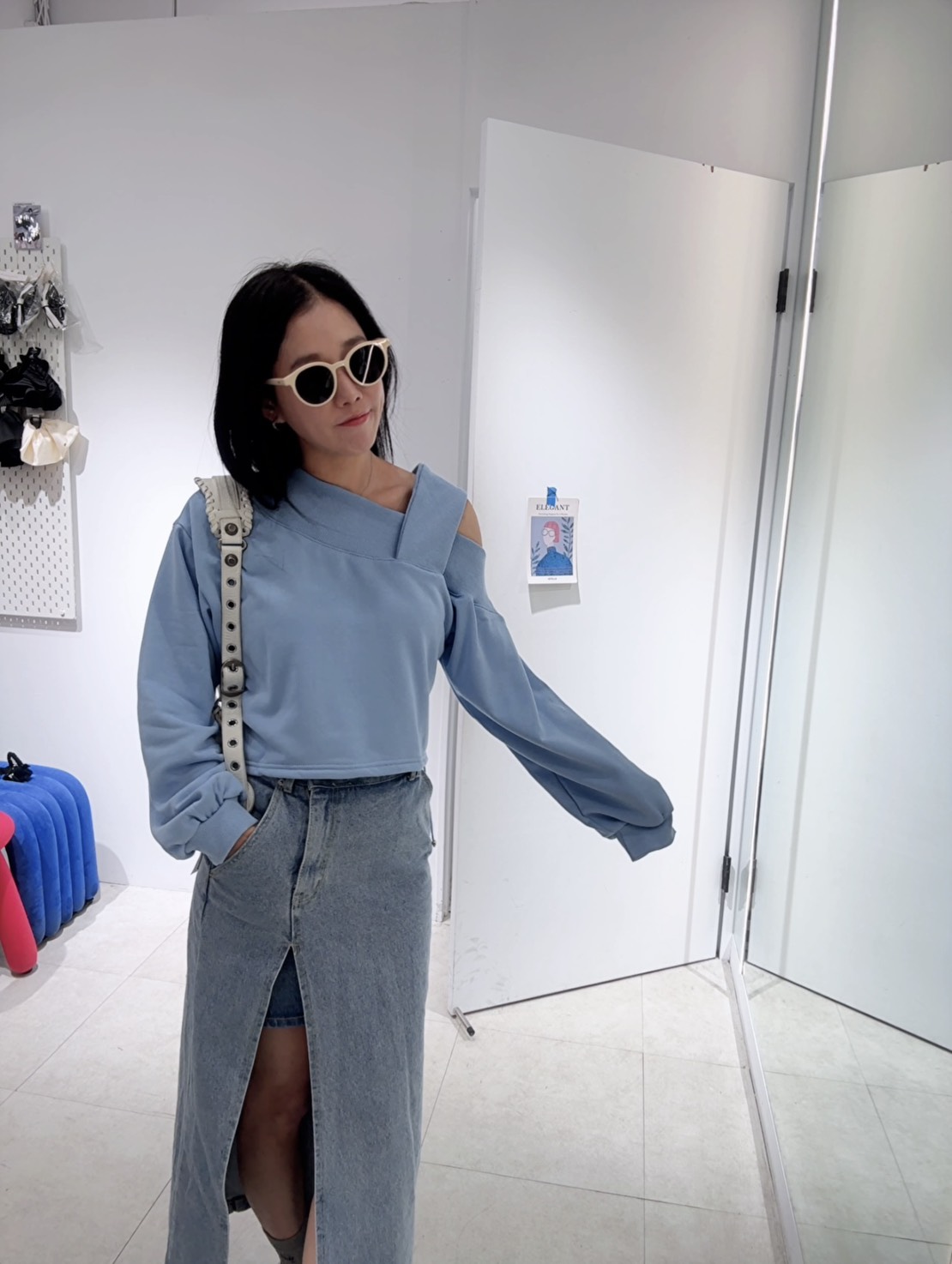 營造出斜肩露鎖骨的效果