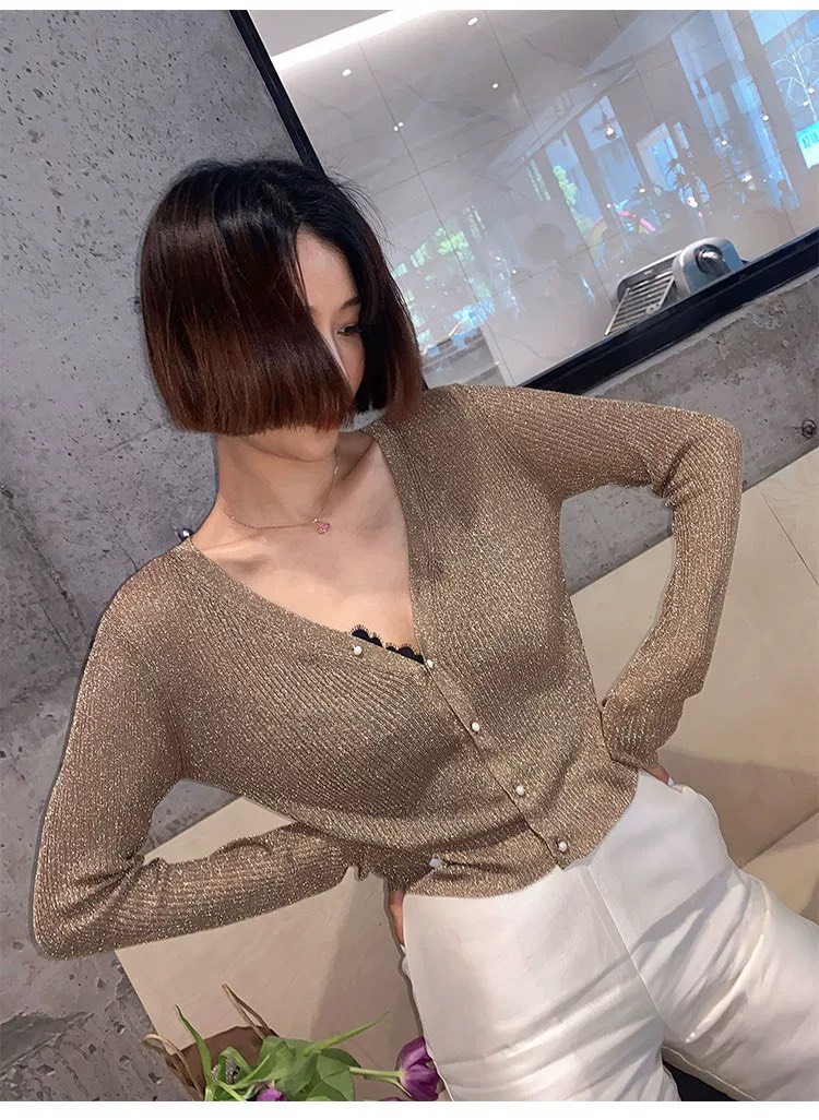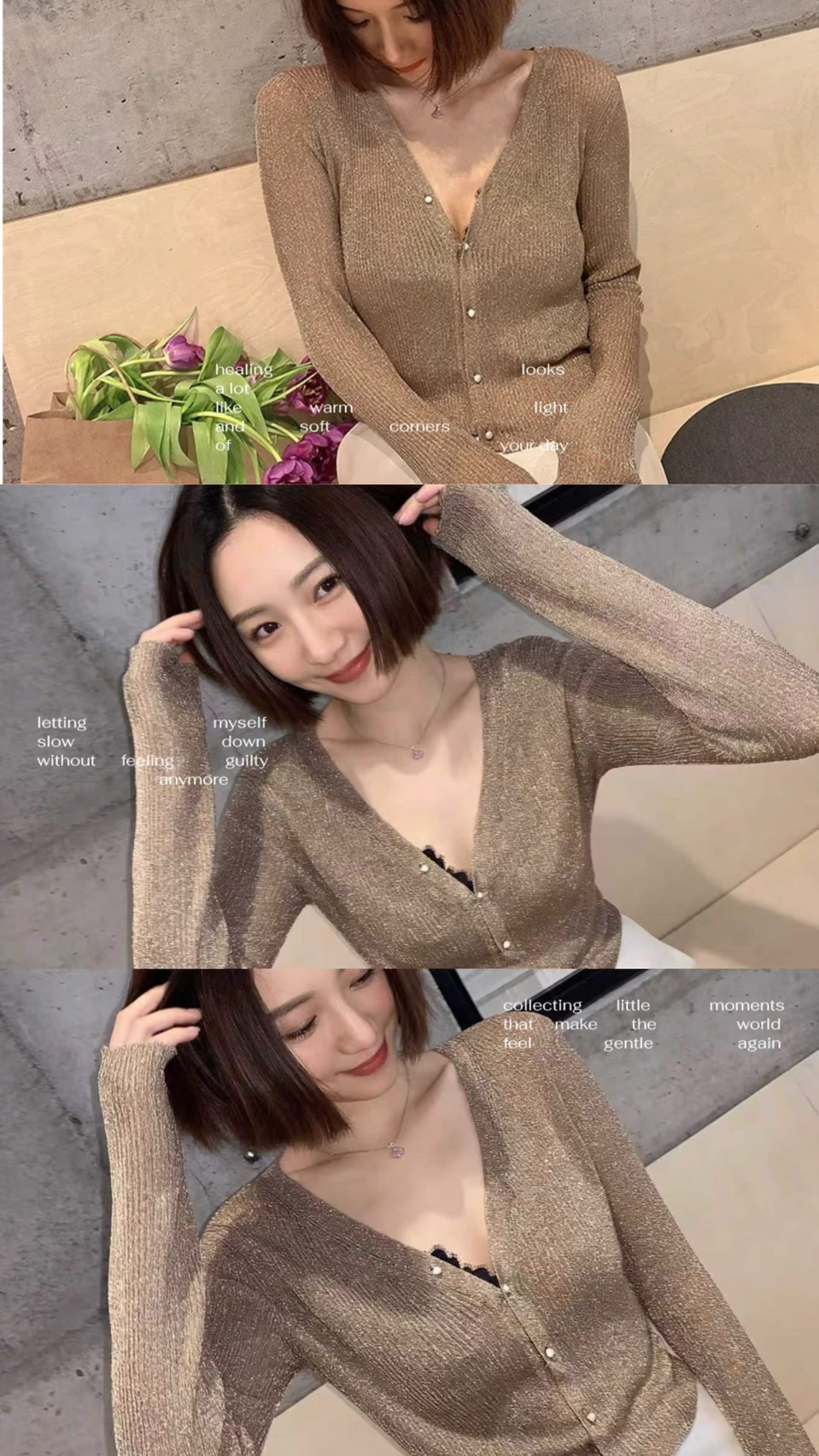 圓潤珍珠取代了普通的鈕扣,讓整件衣服的靈魂瞬間提升了整體的優雅度