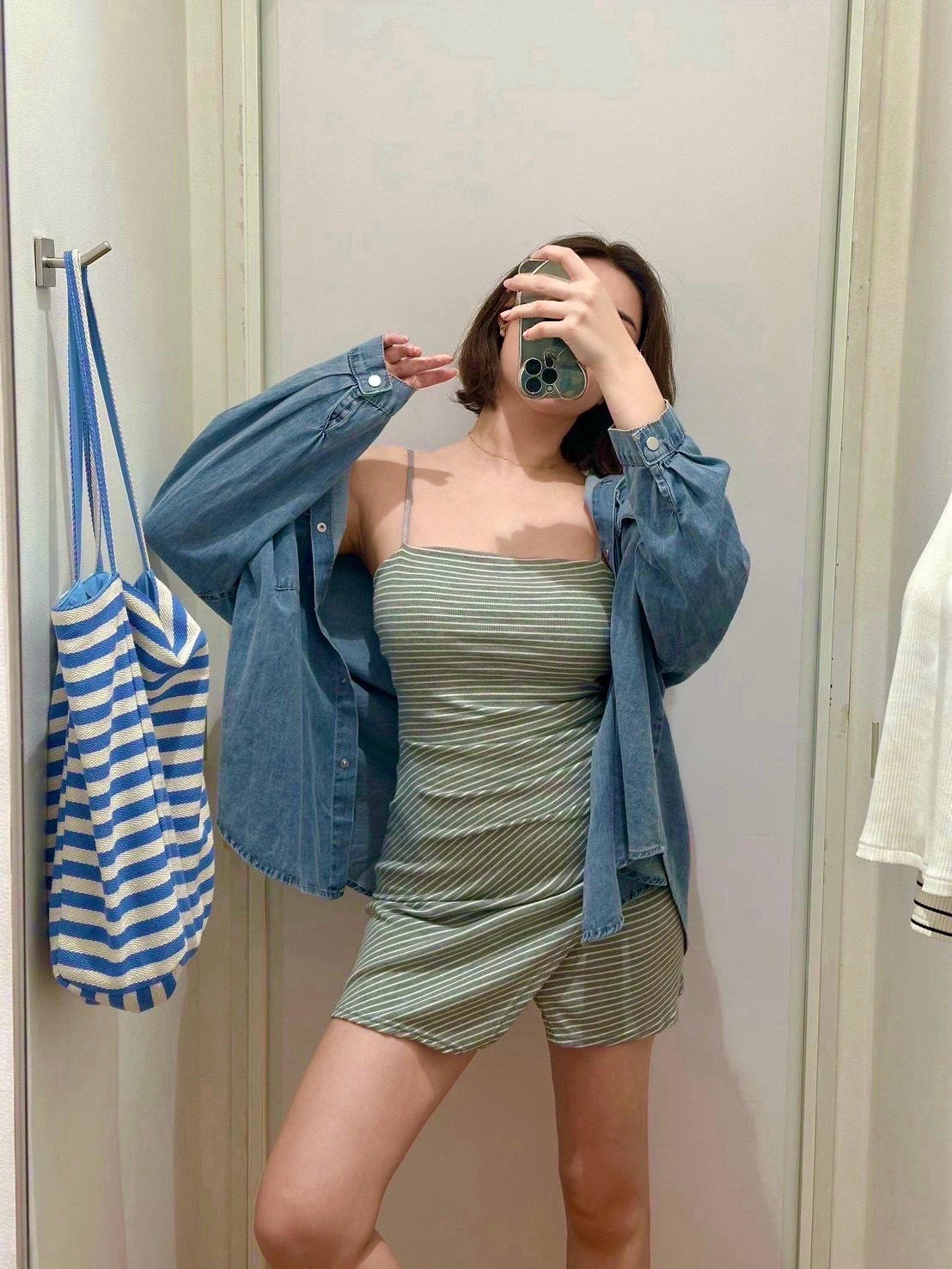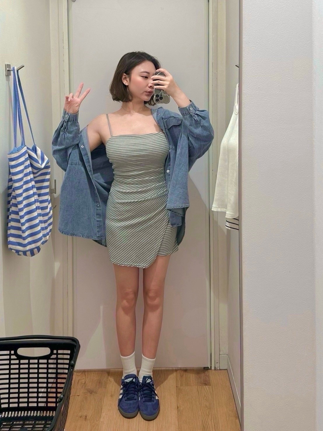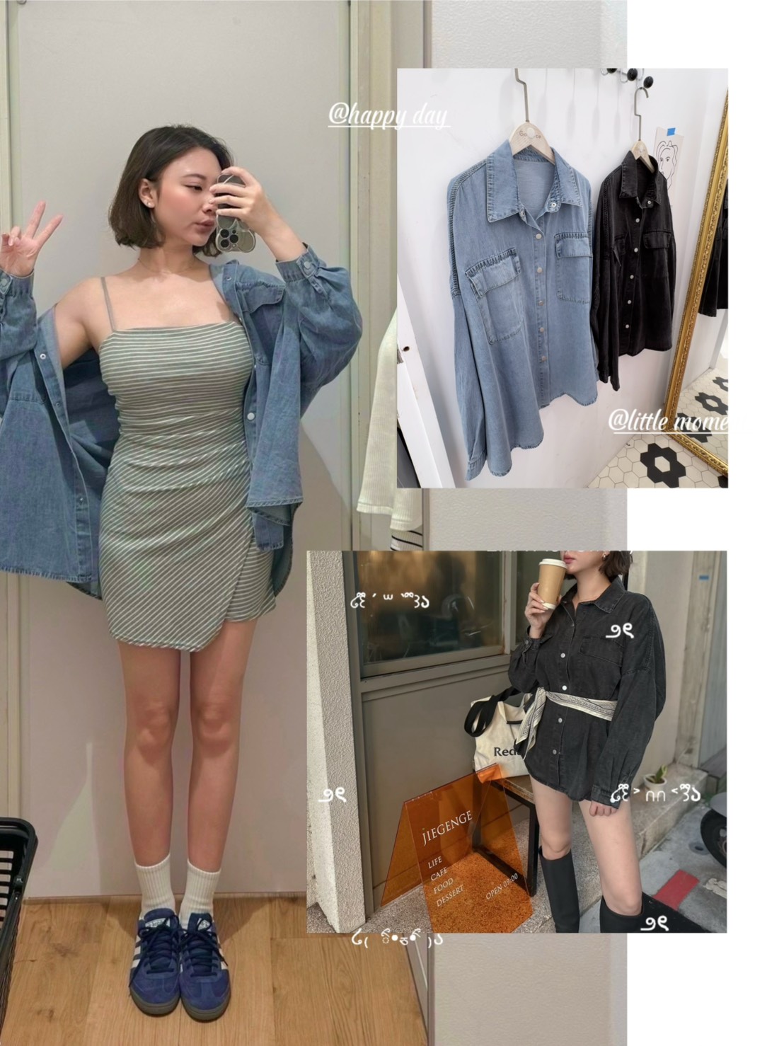 採用 Oversized與落肩設計,能有效修飾肩頸線條,營造出一種「偷穿男朋友襯衫」的隨性氛圍