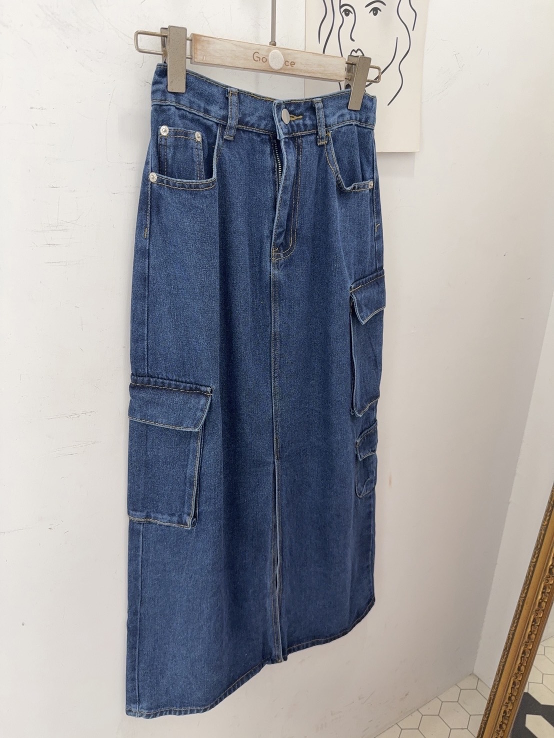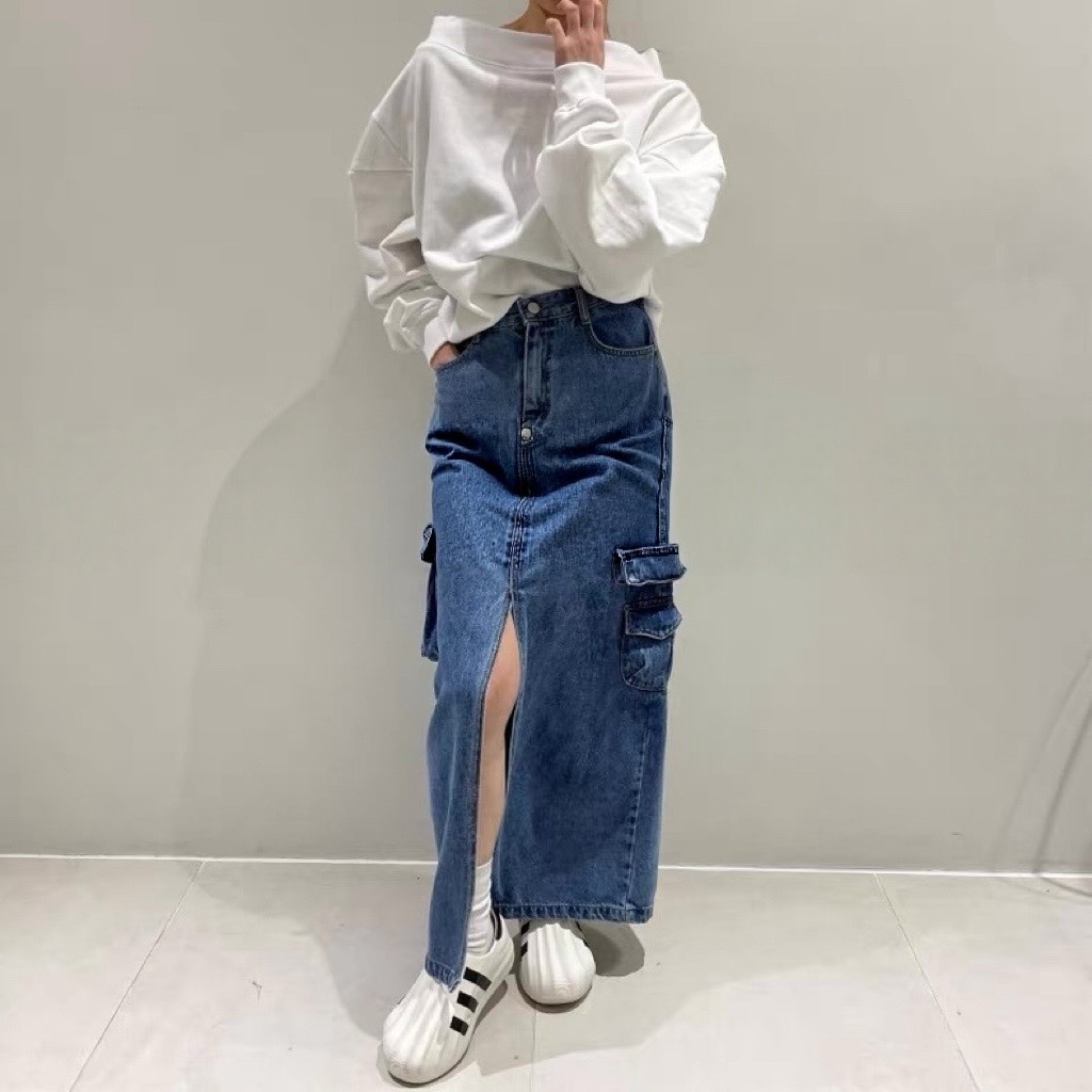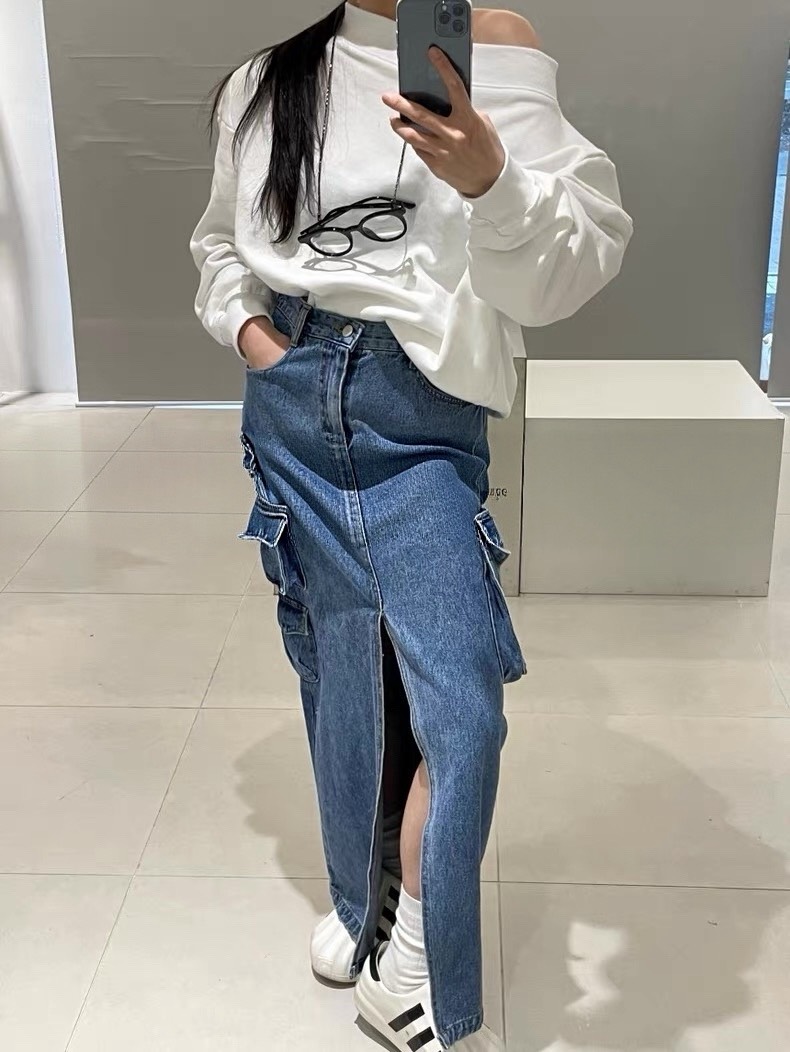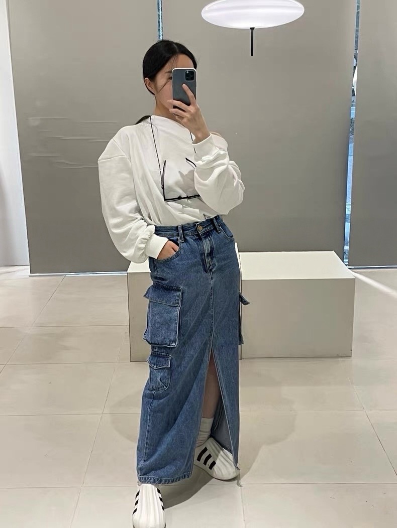 融合了工裝風與復古丹寧元素中長版牛仔工裝裙,設計感與實穿性兼具