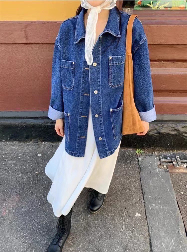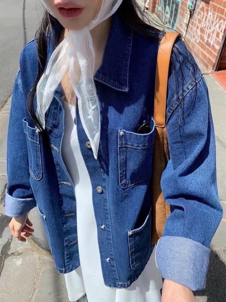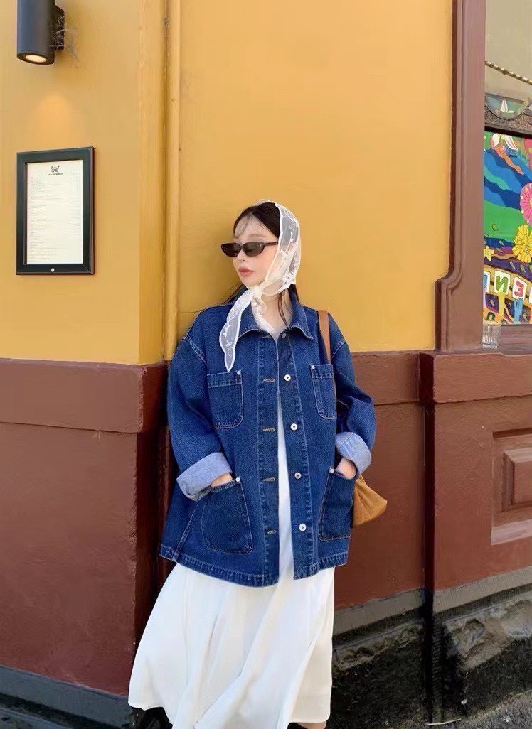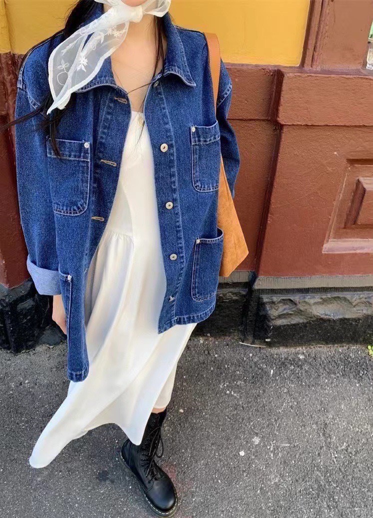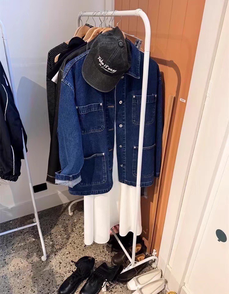 設計感的中深色丹寧工裝外套,主打實用與耐穿,在剪裁上加入了不少現代感與時髦細節