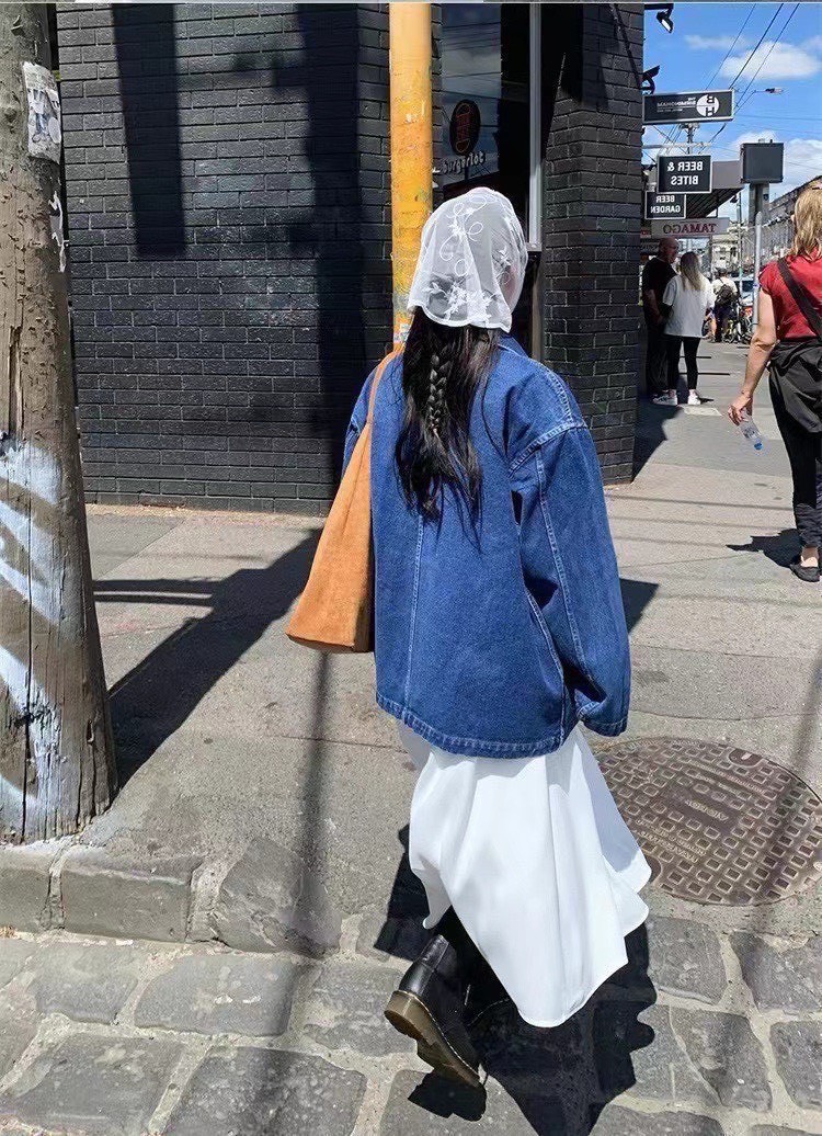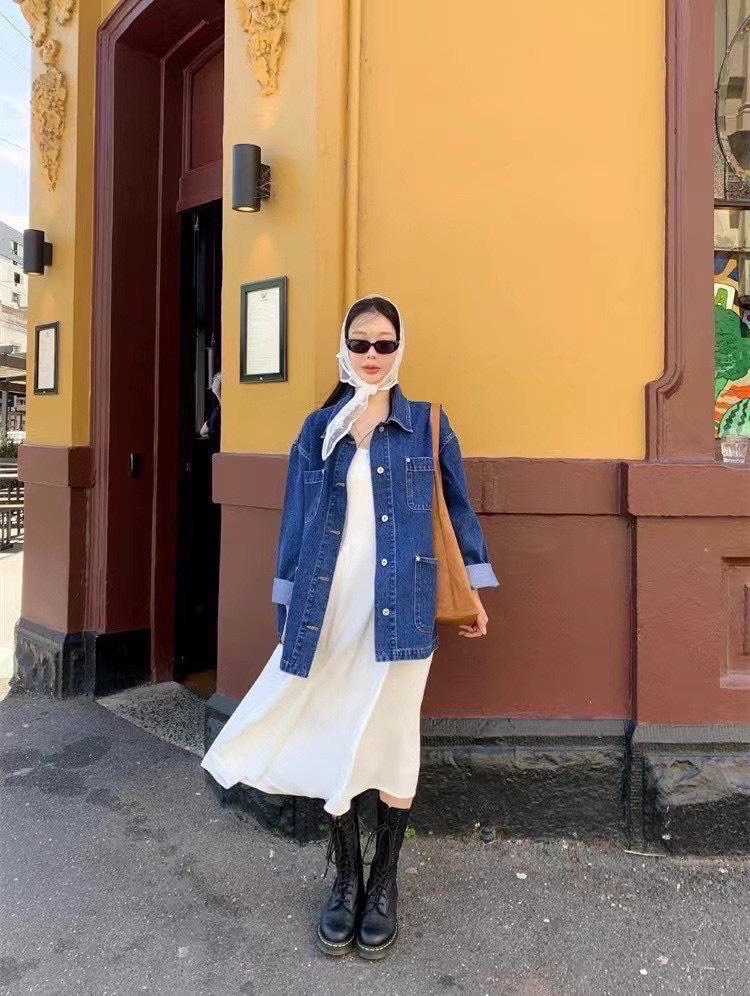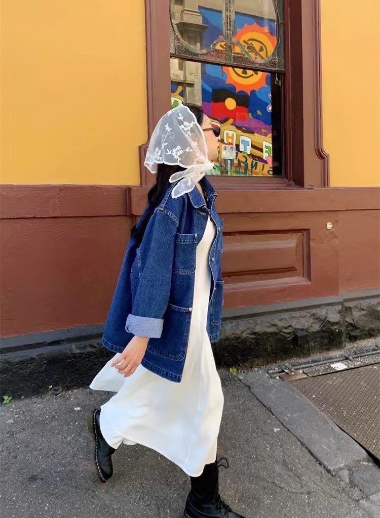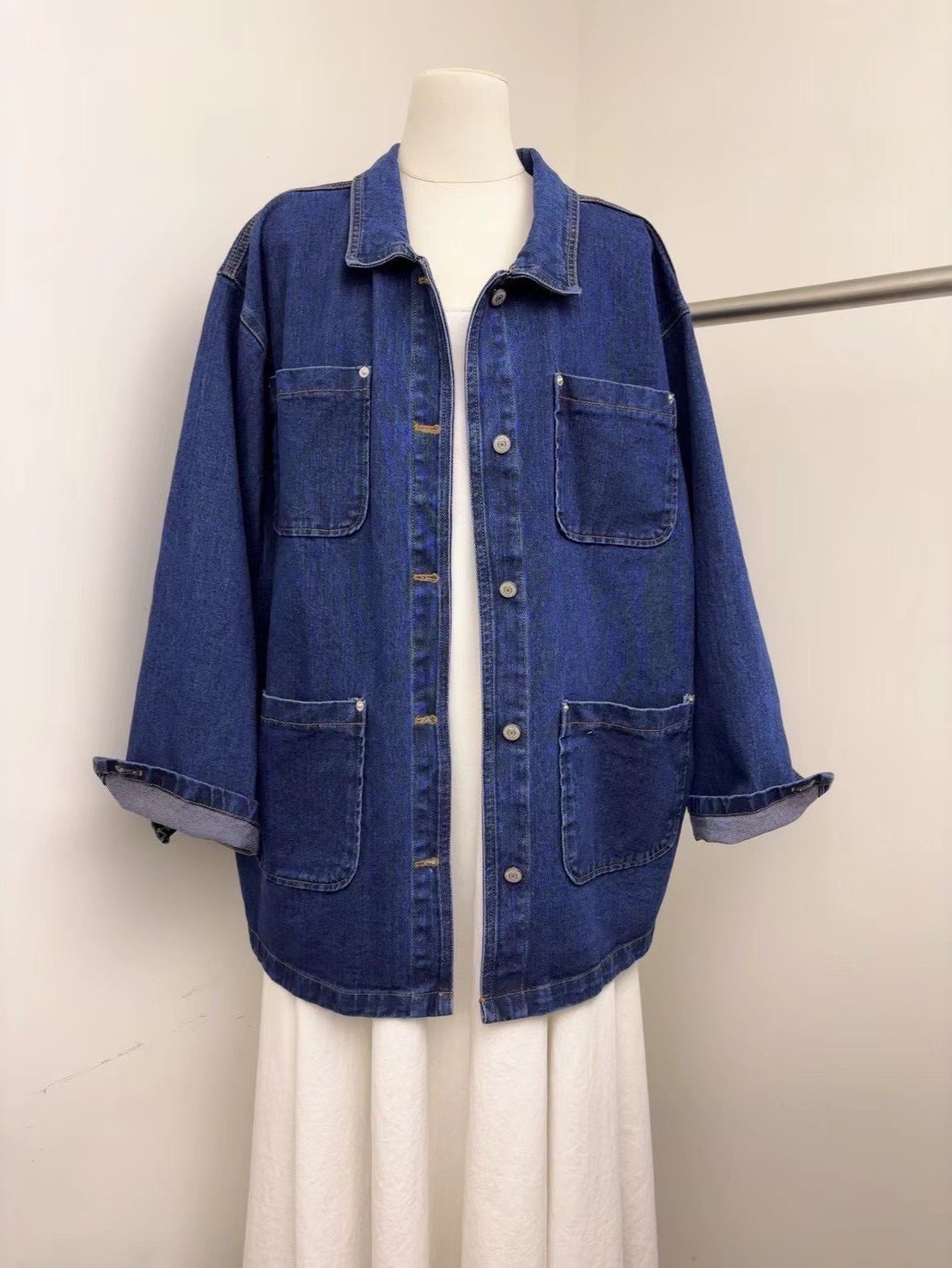 設計感的中深色丹寧工裝外套,主打實用與耐穿,在剪裁上加入了不少現代感與時髦細節