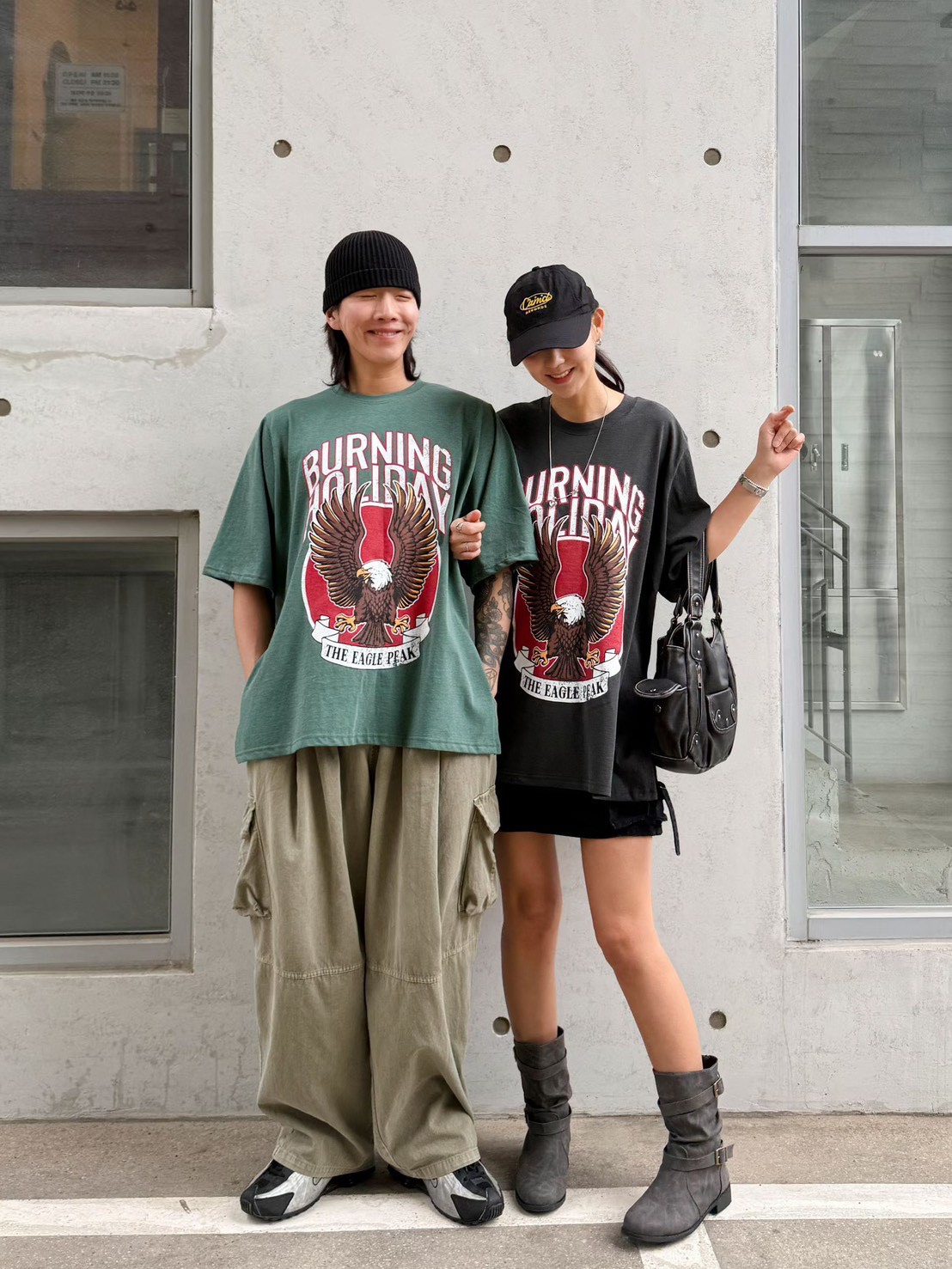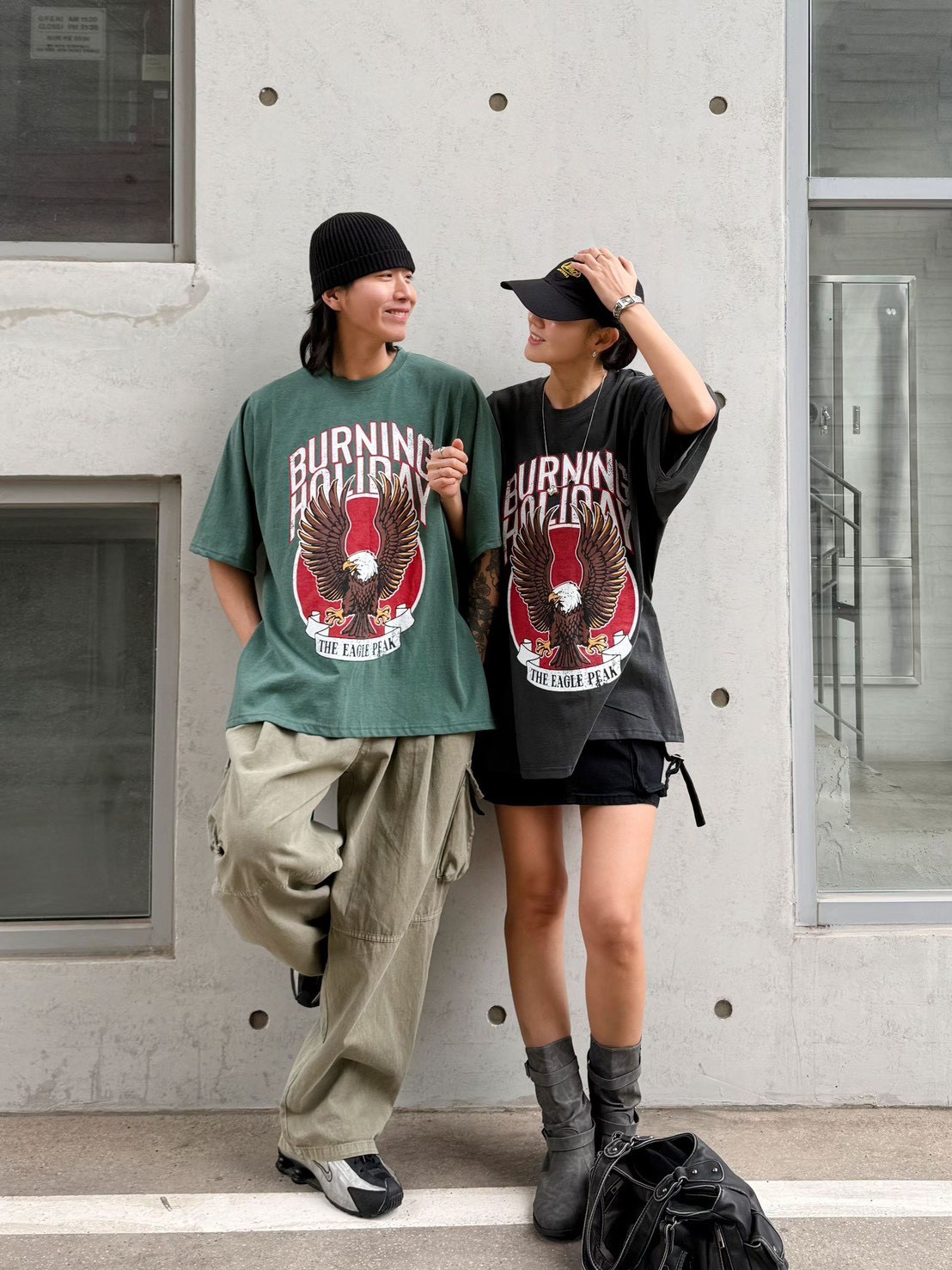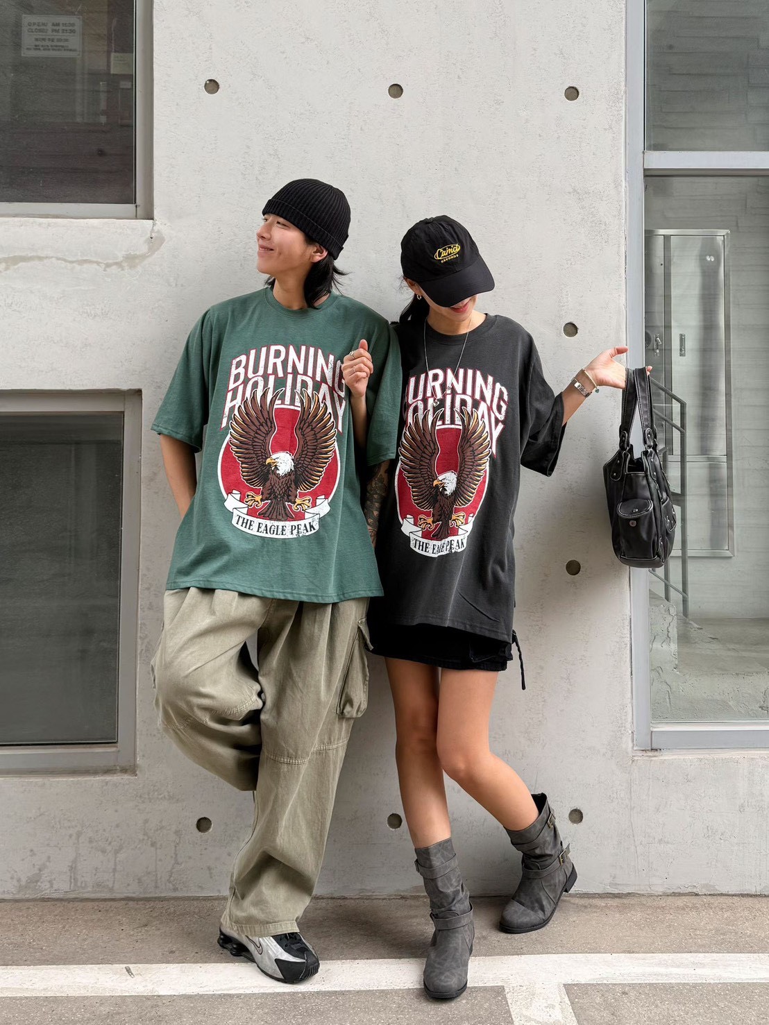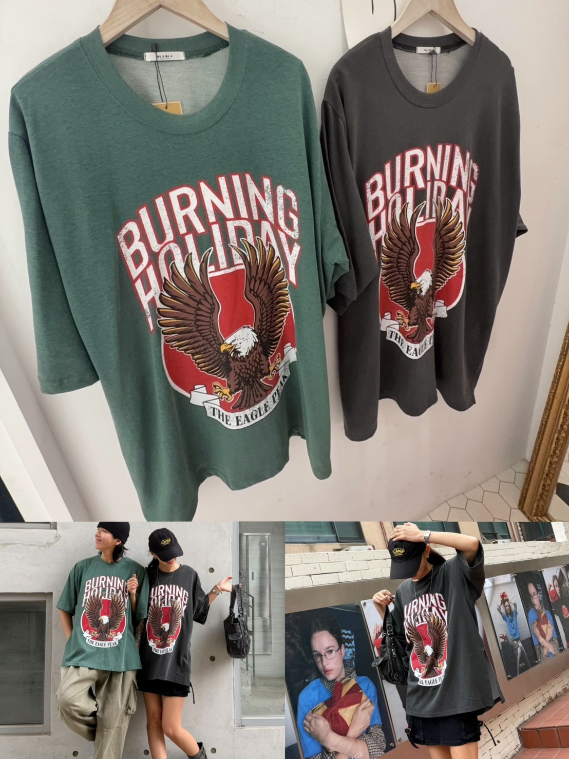 美式復古工裝風給人一種率性、硬朗且充滿活力的感覺 最引人注目的是其高飽和度的圖騰與復古的色調處理 森林綠:這種帶點灰調的綠色非常有質感,是近年復古風的首選,能讓膚色顯白且極具層次感 炭灰黑: 比純黑色更柔和,洗舊的視覺效果讓衣服看起來更有故事感,是非常百搭的口袋名單 採用寬鬆的落肩設計與五分袖長,布料看起來具有一定的厚度,穿起來挺括有型,不會軟塌貼身