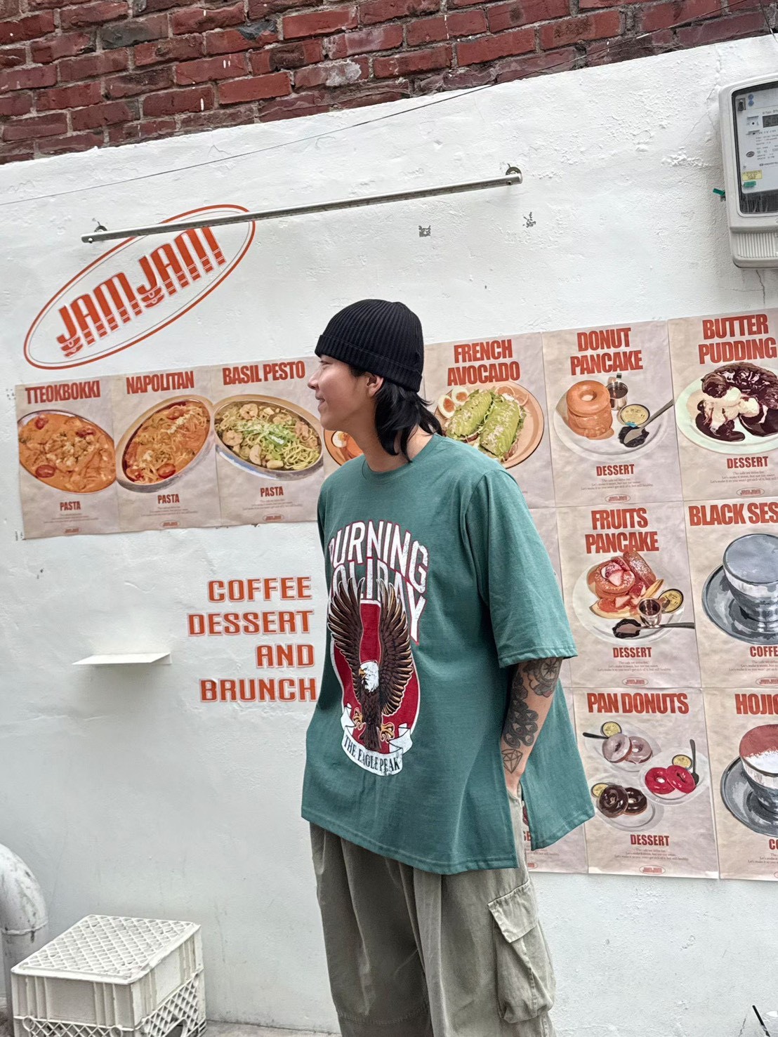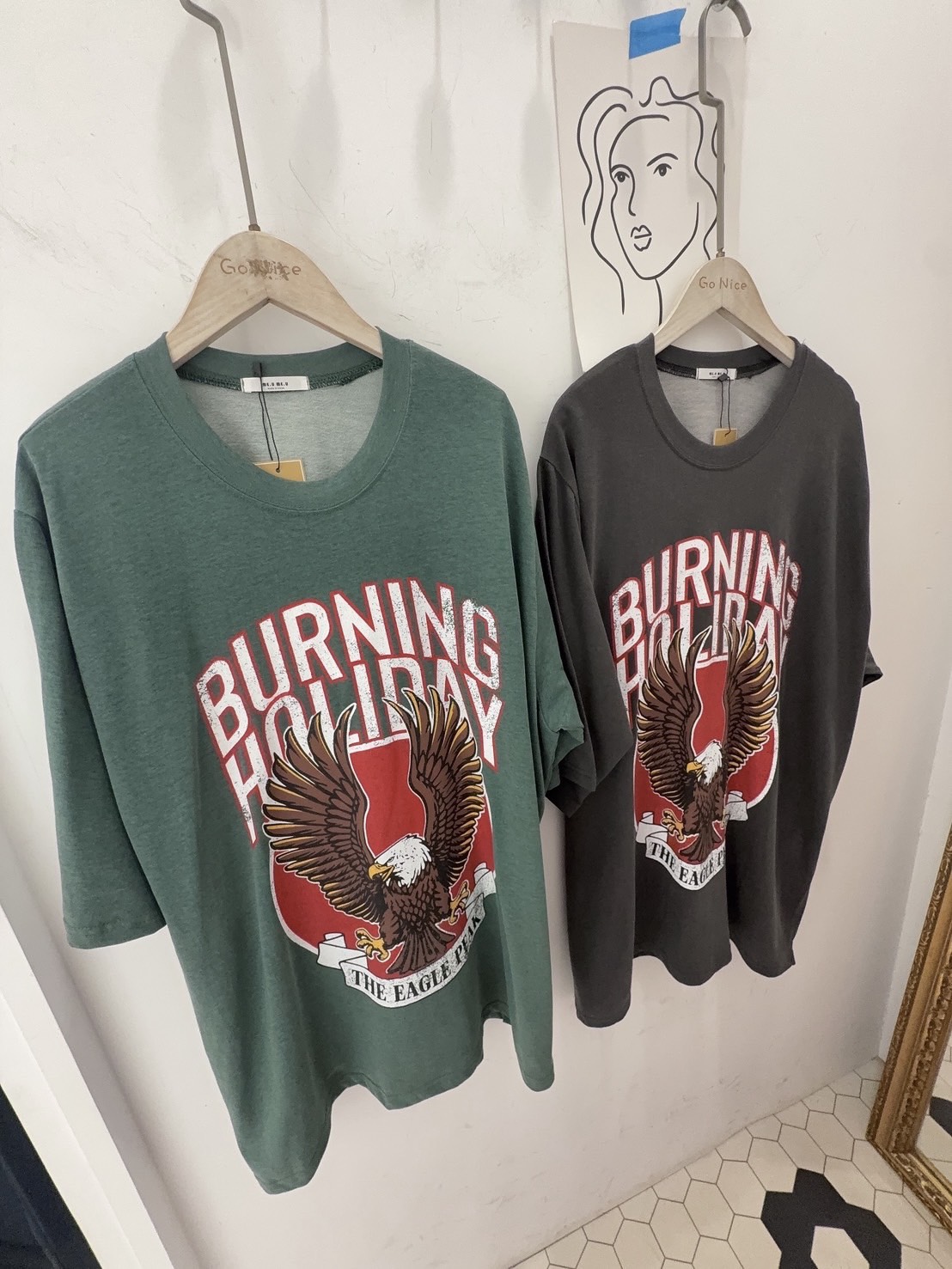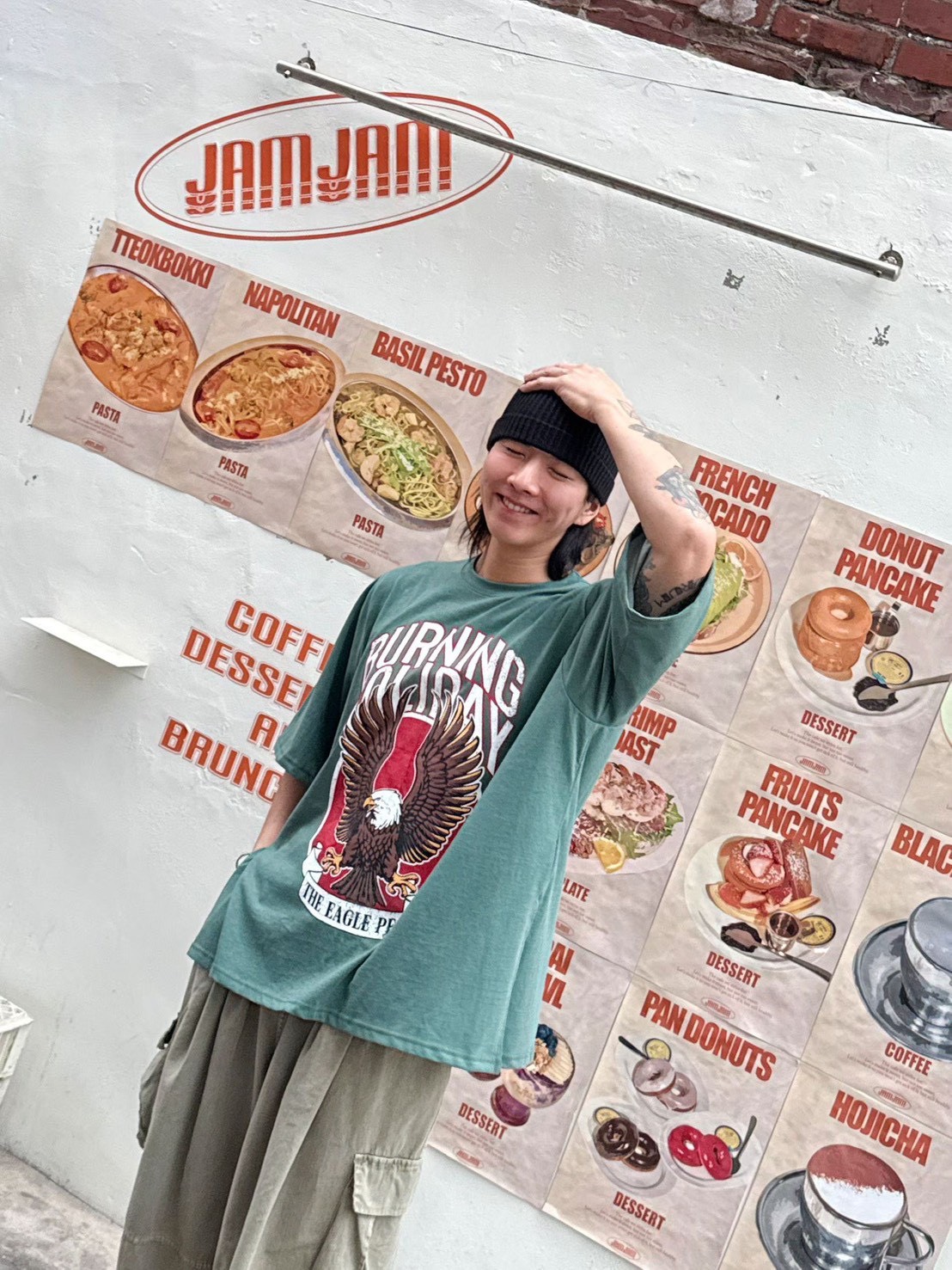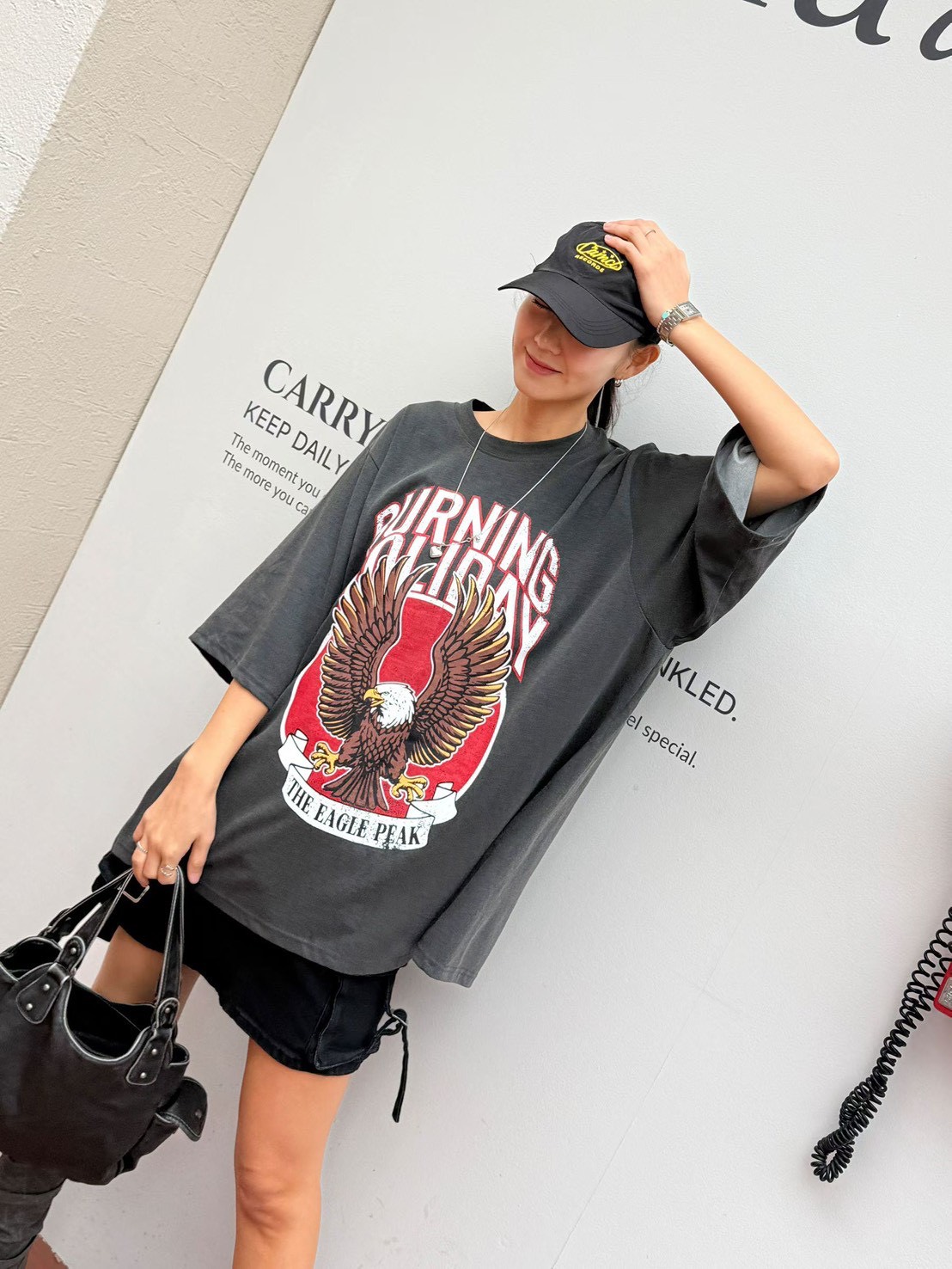 美式復古工裝風給人一種率性、硬朗且充滿活力的感覺 最引人注目的是其高飽和度的圖騰與復古的色調處理 森林綠:這種帶點灰調的綠色非常有質感,是近年復古風的首選,能讓膚色顯白且極具層次感 炭灰黑: 比純黑色更柔和,洗舊的視覺效果讓衣服看起來更有故事感,是非常百搭的口袋名單 採用寬鬆的落肩設計與五分袖長,布料看起來具有一定的厚度,穿起來挺括有型,不會軟塌貼身