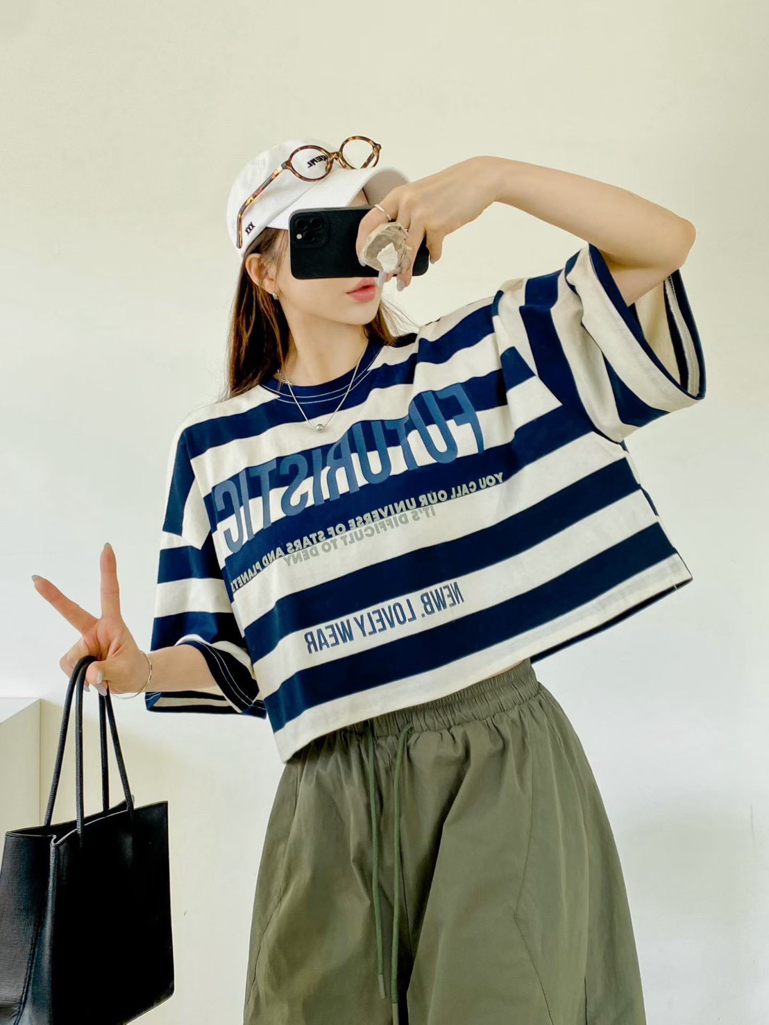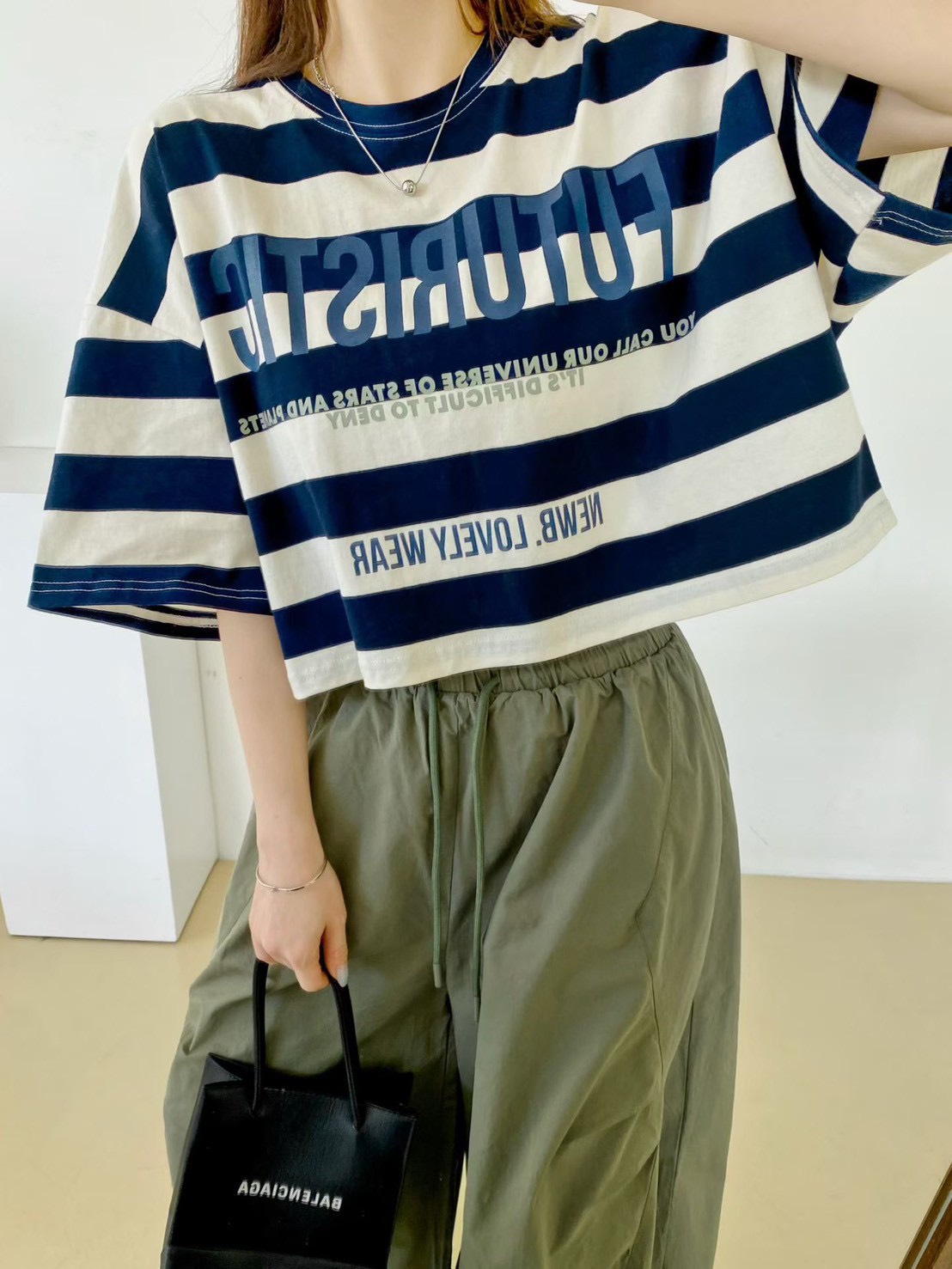 短版的長度剛好可以拉高腰線讓身材比例看起來更好,不會因為寬大而顯得笨重