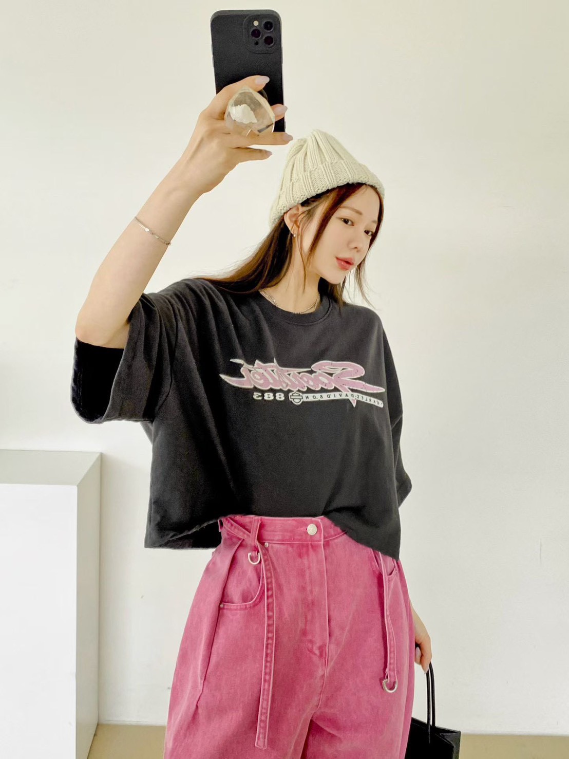 配色低調又有重點,短版剪裁自然拉高比例