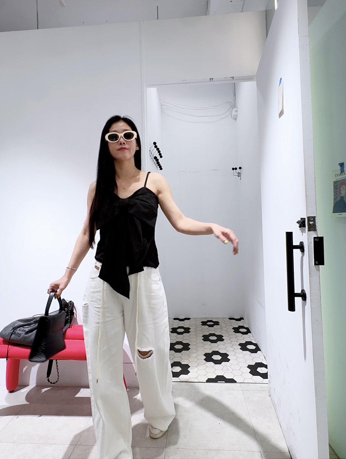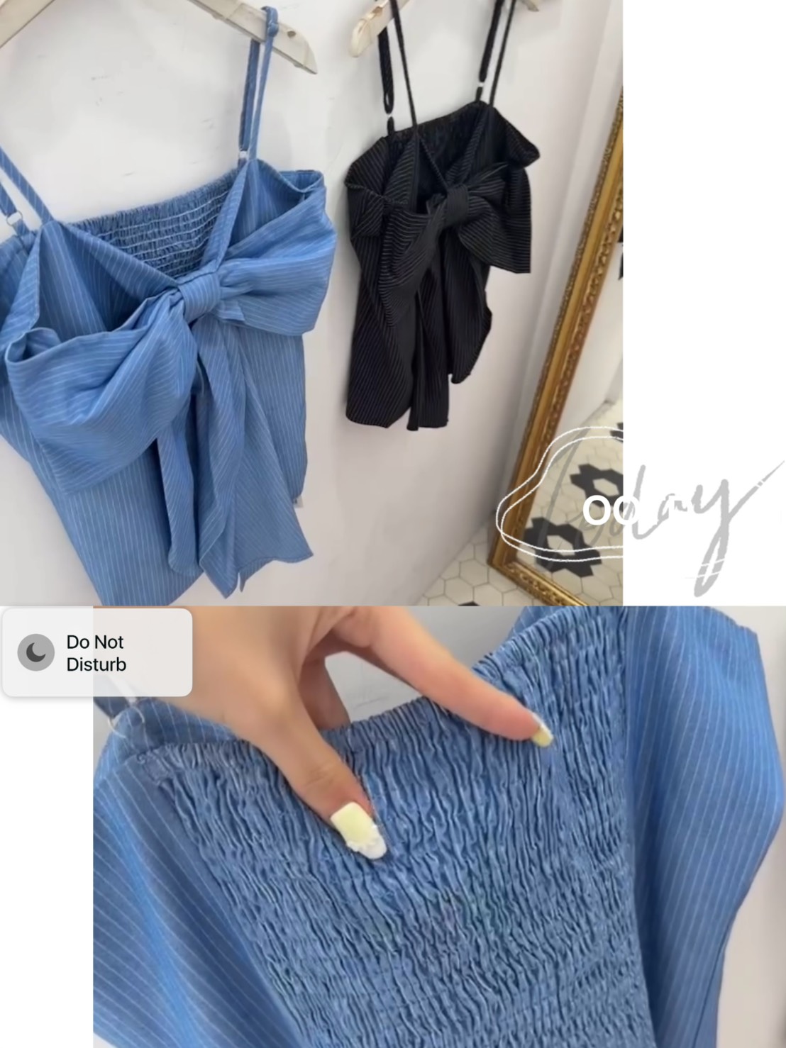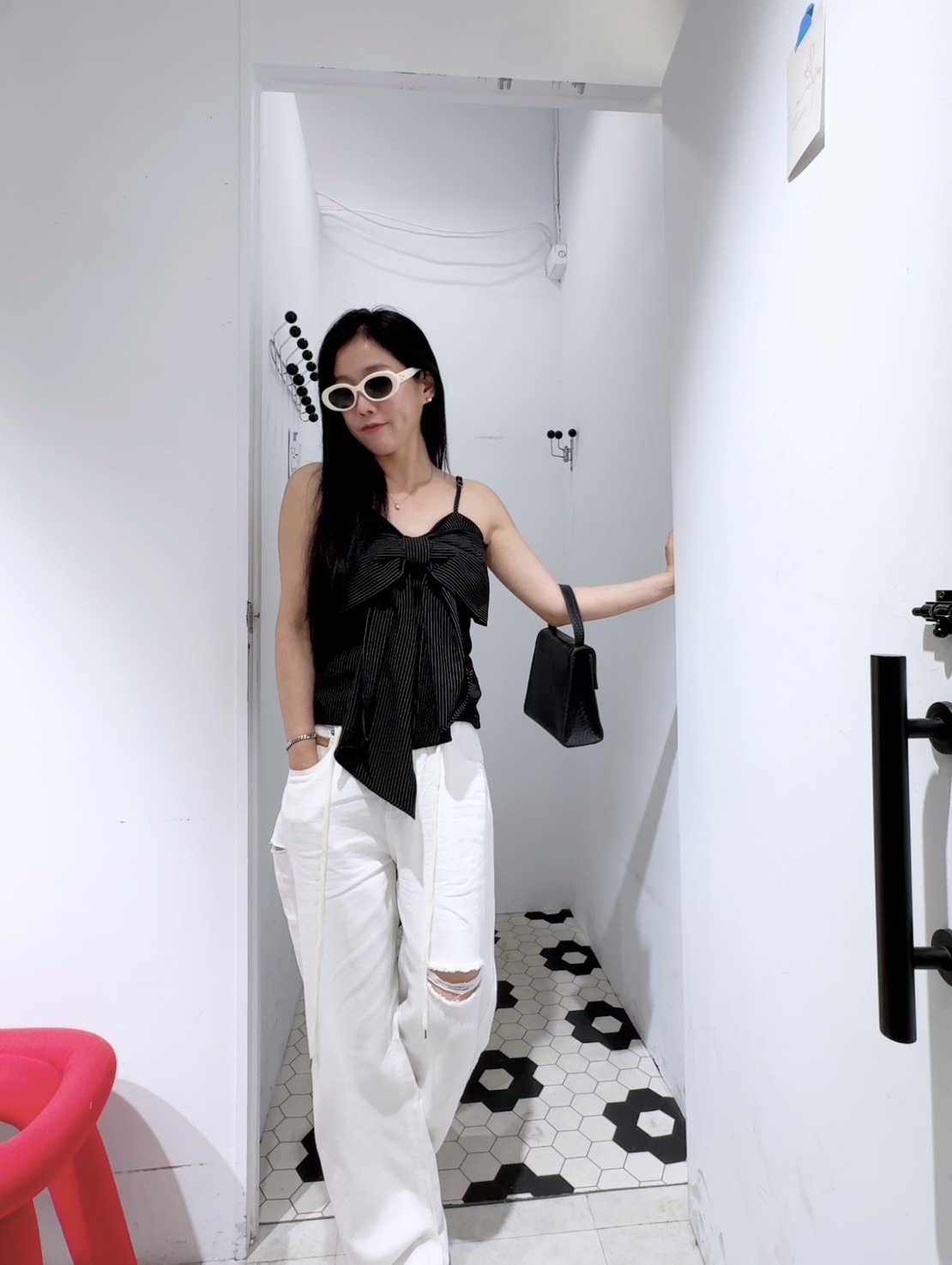 結合了甜美蝴蝶結與俐落條紋兩種截然不同的元素,呈現出一種「甜酷風」的質感