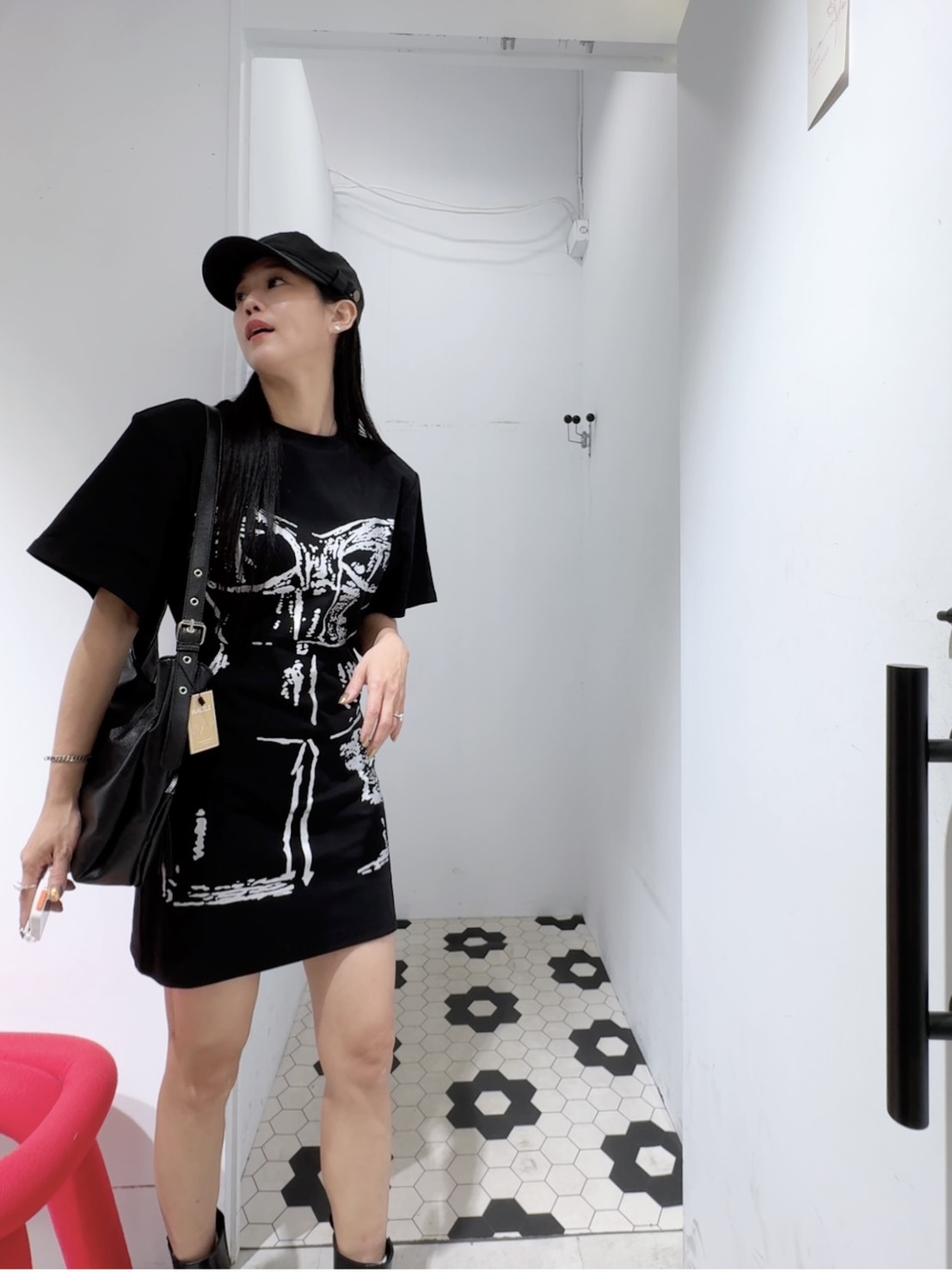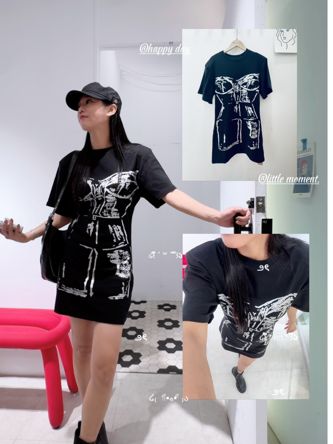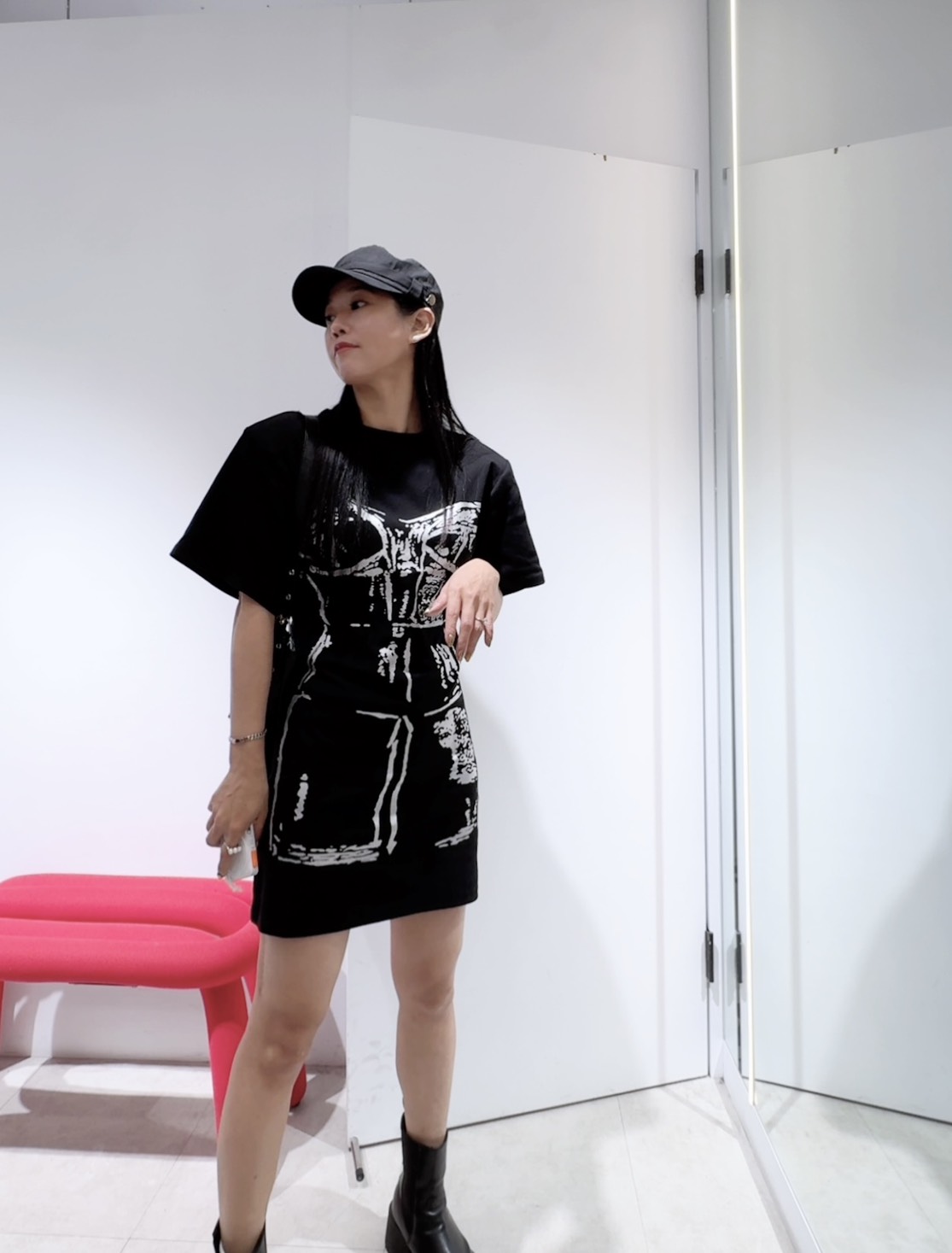 寬鬆的圓領 結合了寬大的中性版型與強調女性身形的印花,形成了一種有趣的視覺反差
