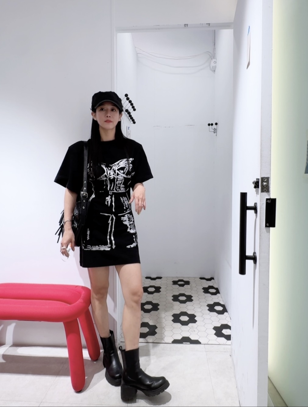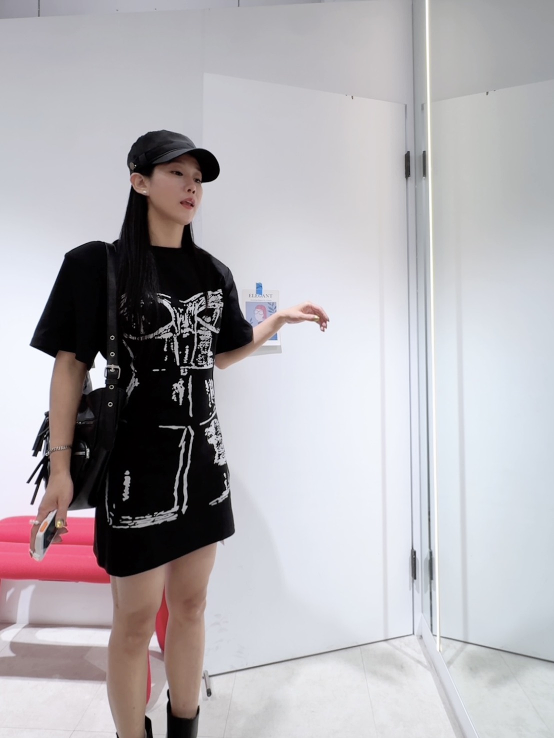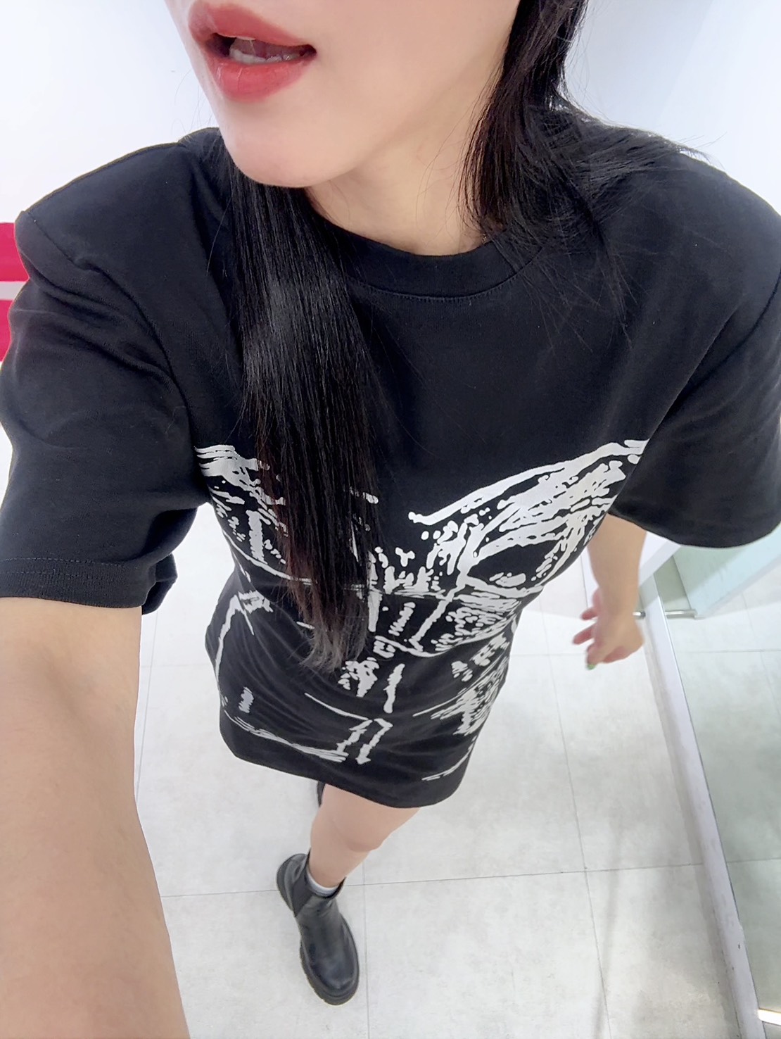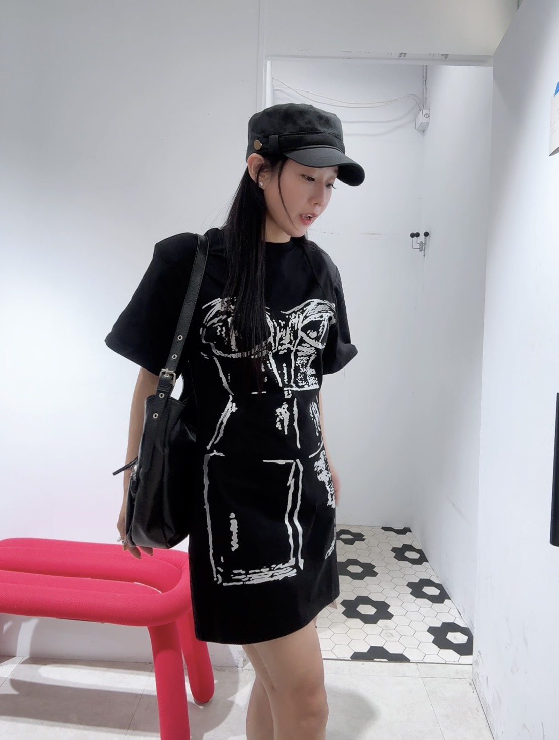 寬鬆的圓領 結合了寬大的中性版型與強調女性身形的印花,形成了一種有趣的視覺反差