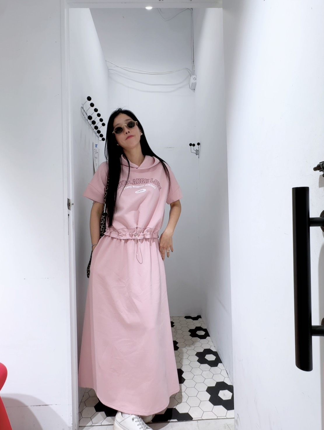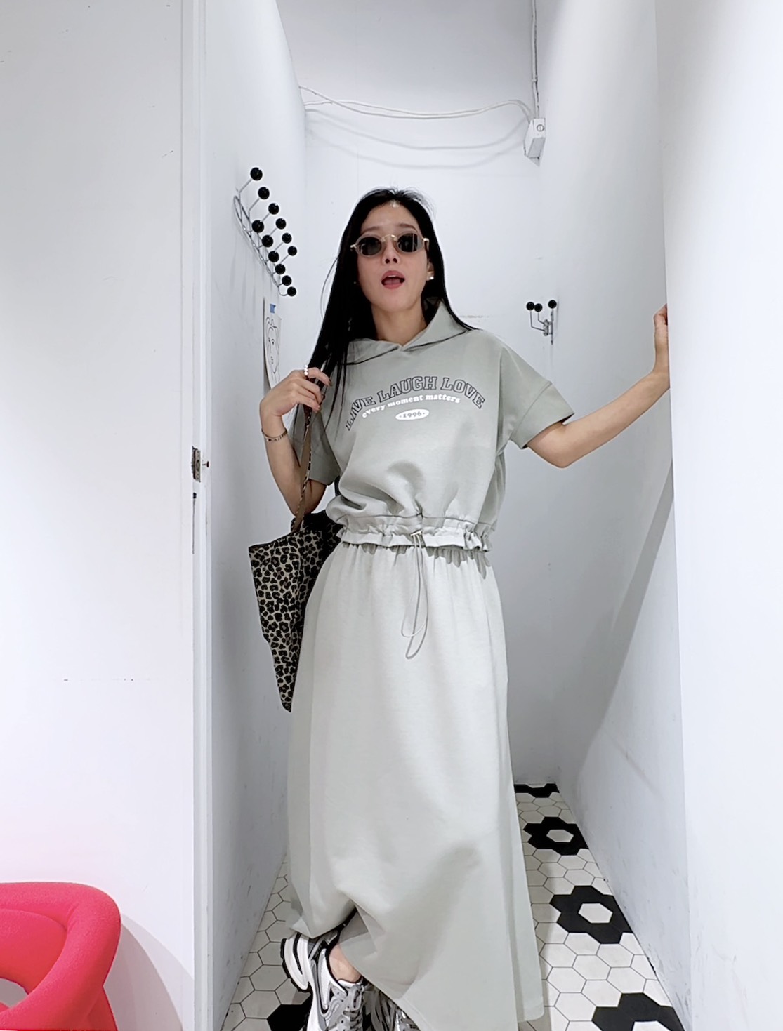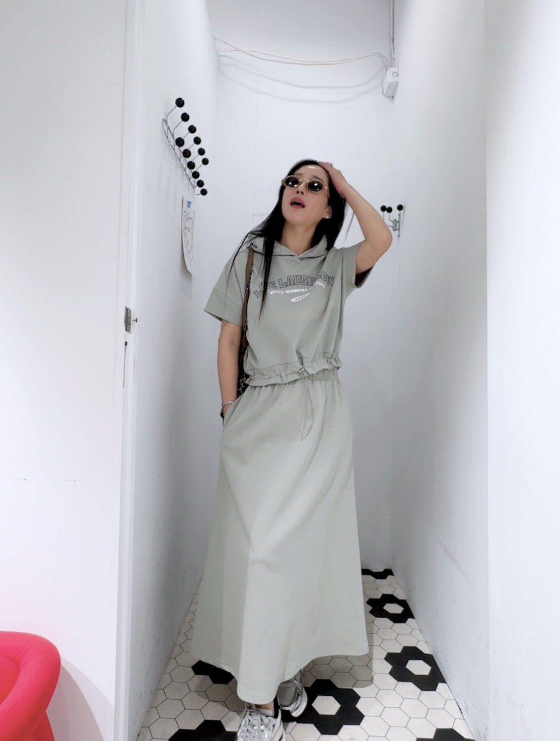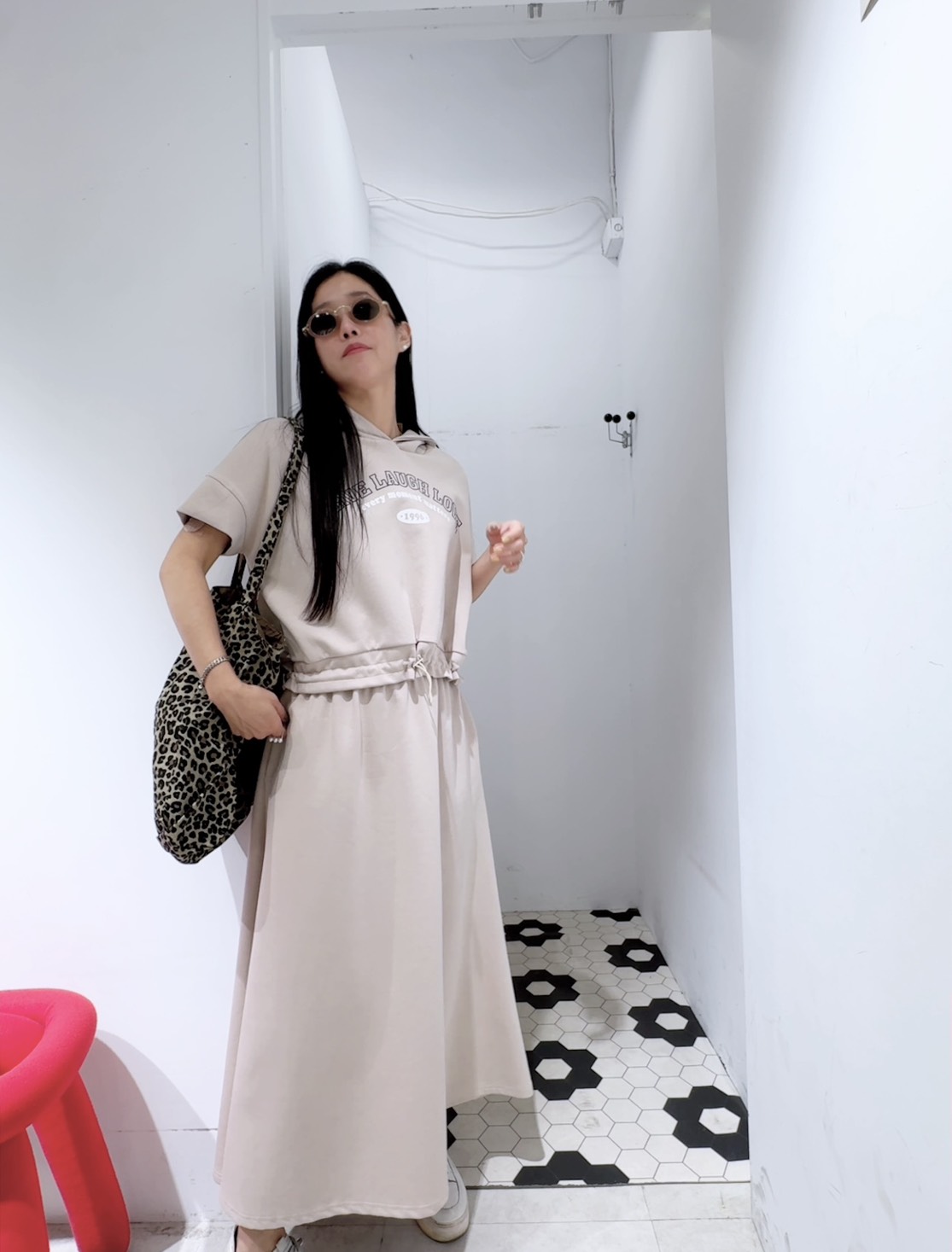 鬆緊腰的長裙,垂墜感很好,修飾身形又顯瘦,走路會有自然的飄感