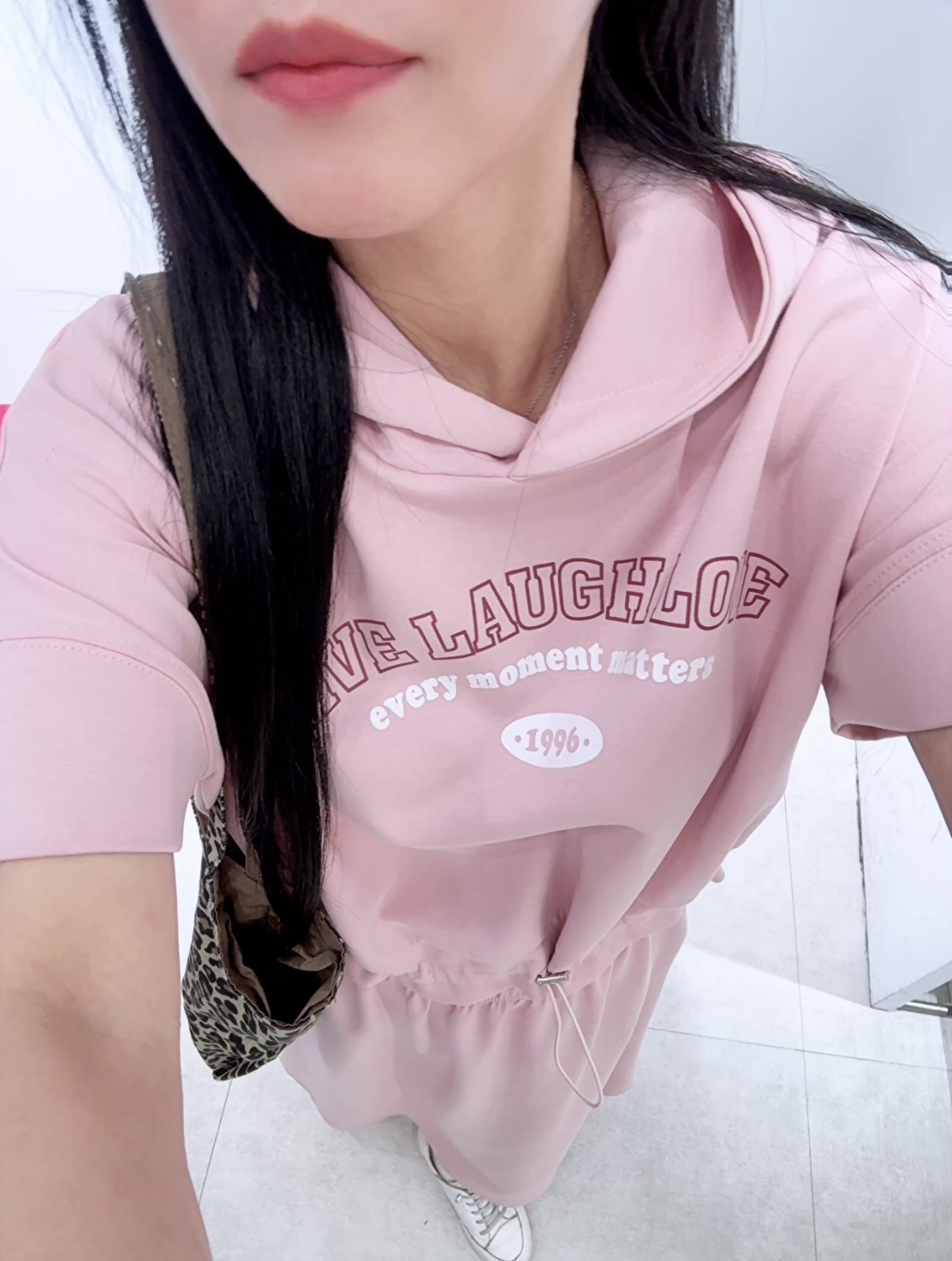 下擺有抽繩可以調整,穿起來俐落又帶點小性感