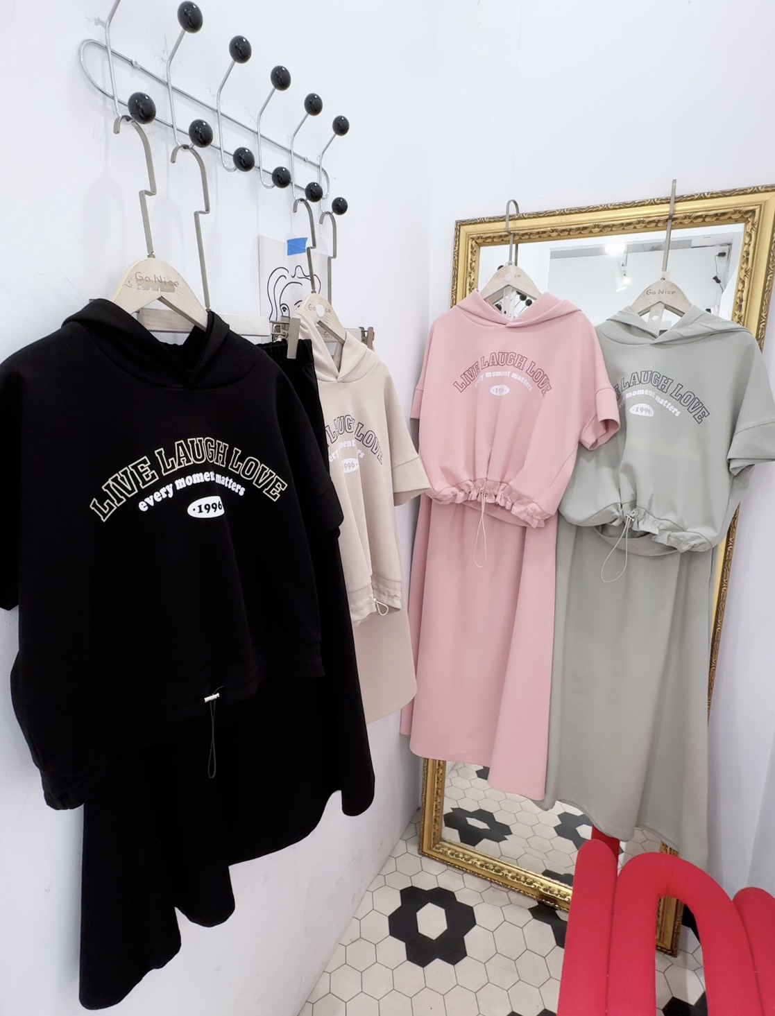 短版連帽設計+英文字印花,版型偏寬鬆