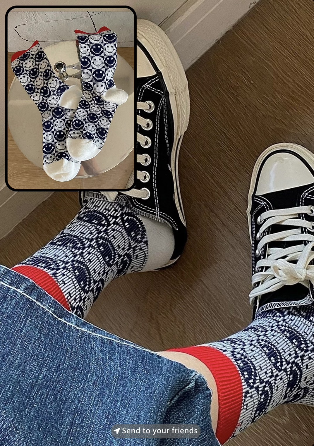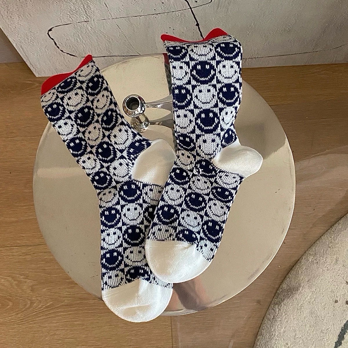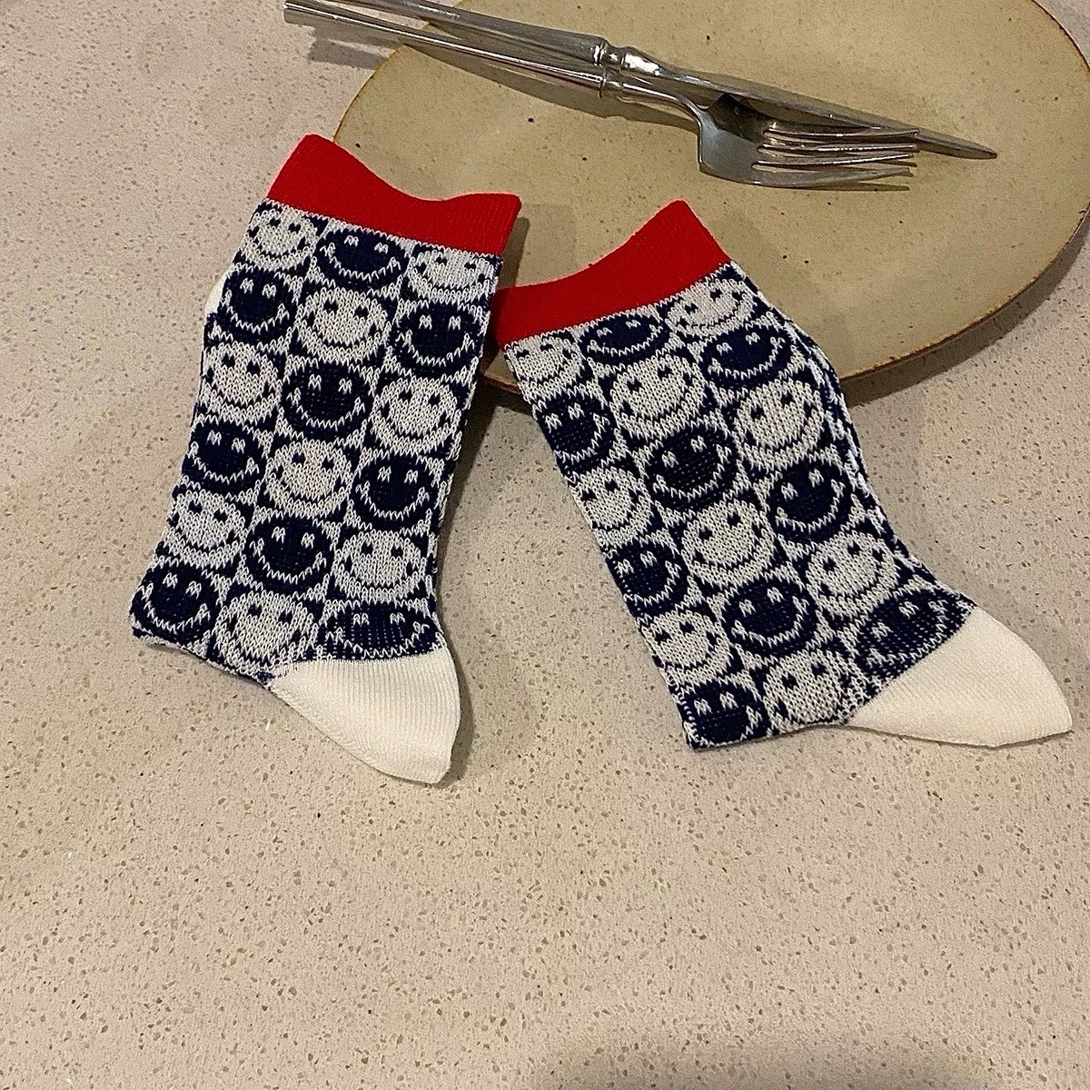 ins韓國東大門雙針雙路工藝撞色笑臉圖案襪子女學院風中筒襪~組合價賣場任選3雙200
