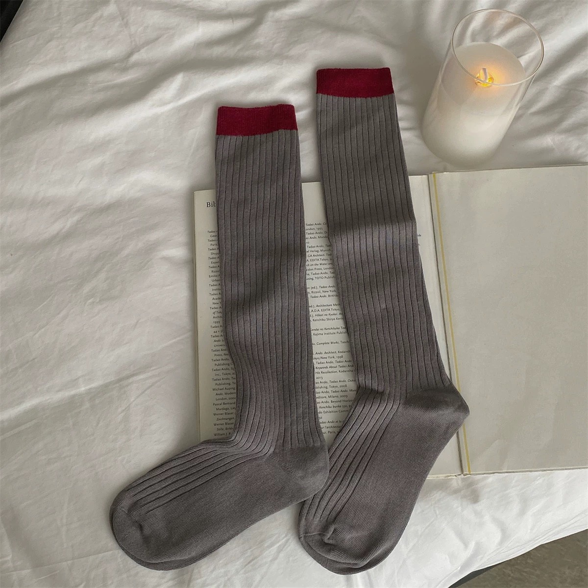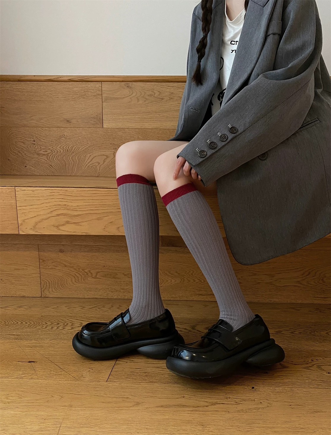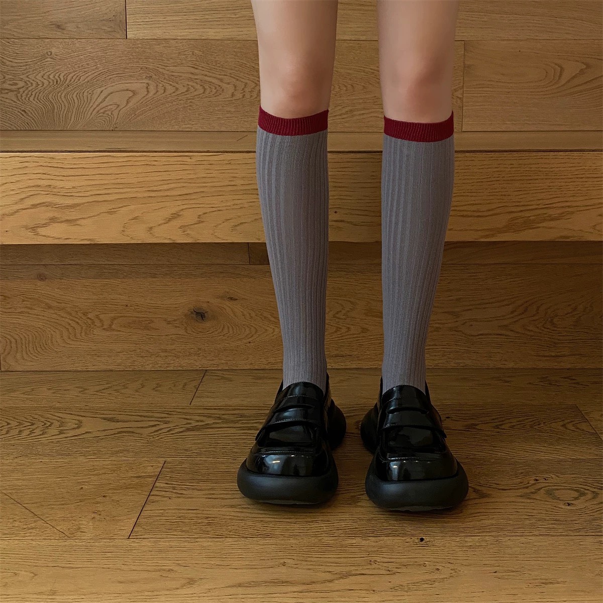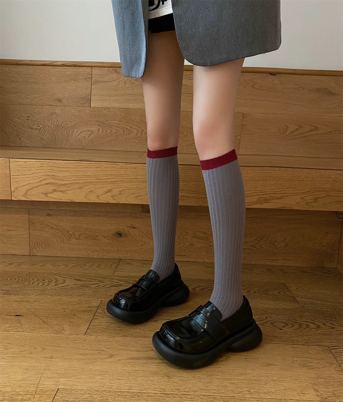 格雷系~安哥拉紅色系灰色小腿襪堆堆襪