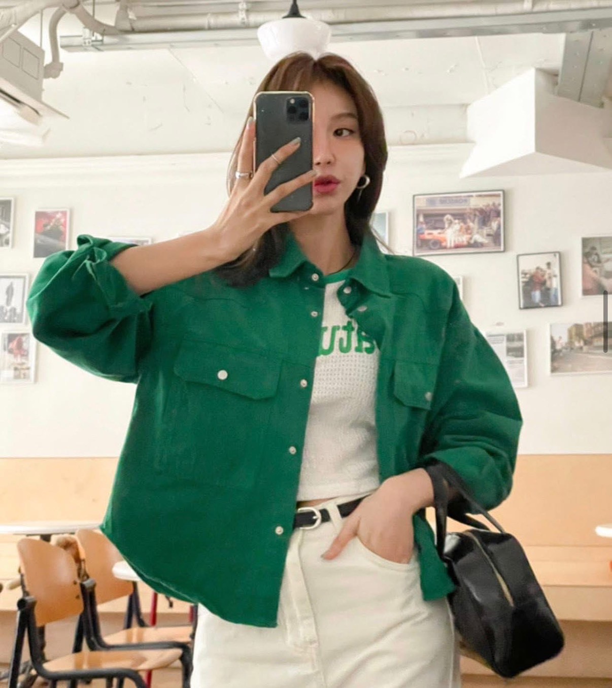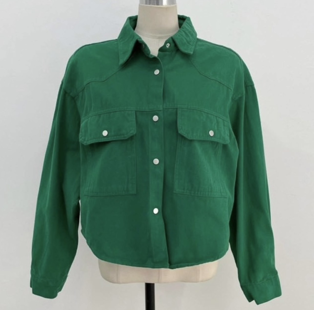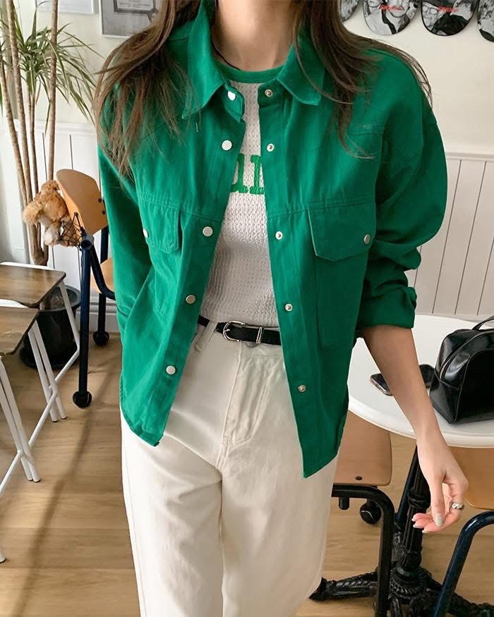 短版的長度剛好落在骨盆附近,能夠優化身材比例,視覺上讓腿部更修長 前方設有兩個標誌性的大口袋,增加了層次感與視覺重點。車縫線勾勒出的輪廓感,讓原本平淡的布料多了幾分挺括與俐落 挺度足夠,既可以當作襯衫單穿,也非常適合作為薄外套使用