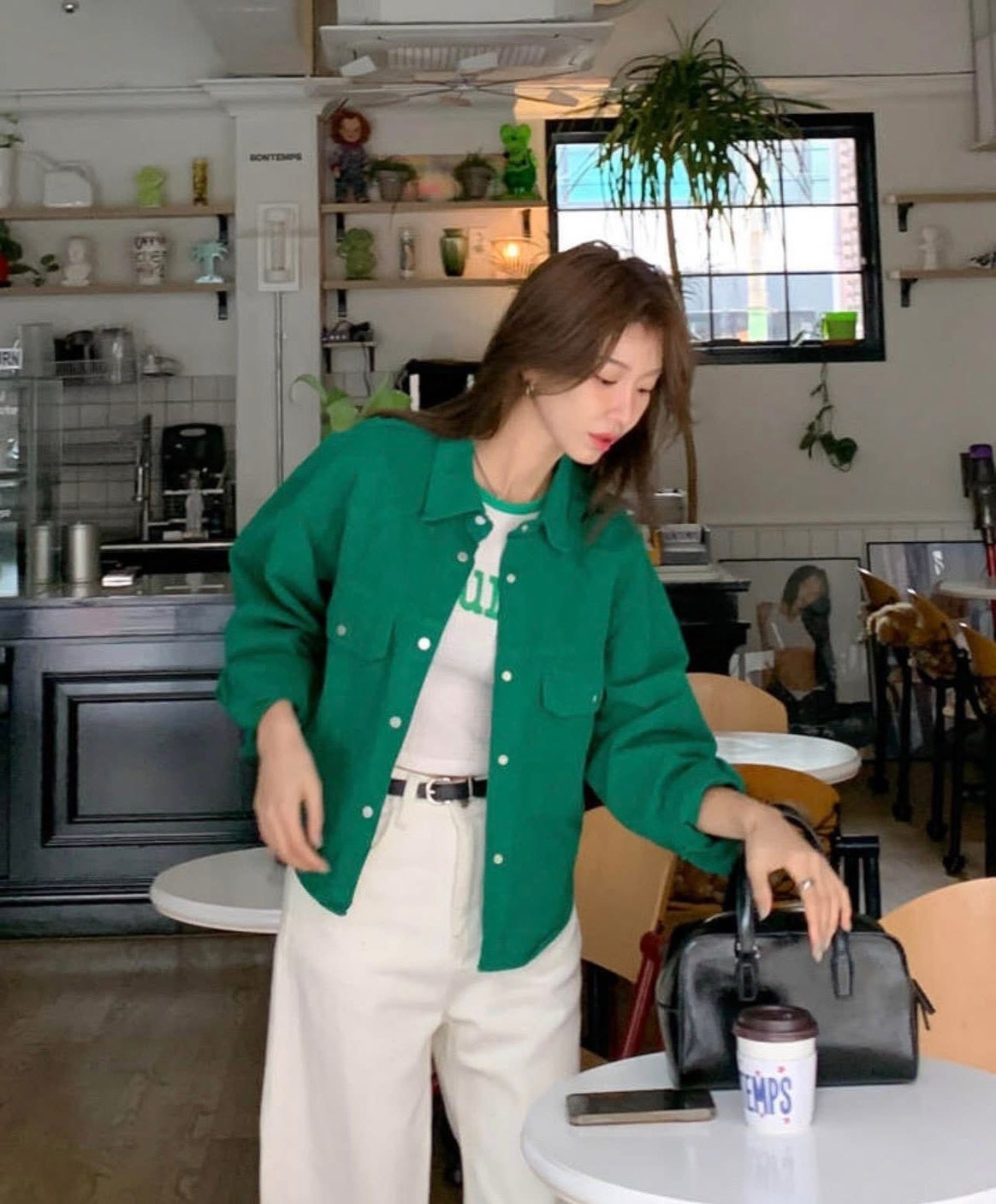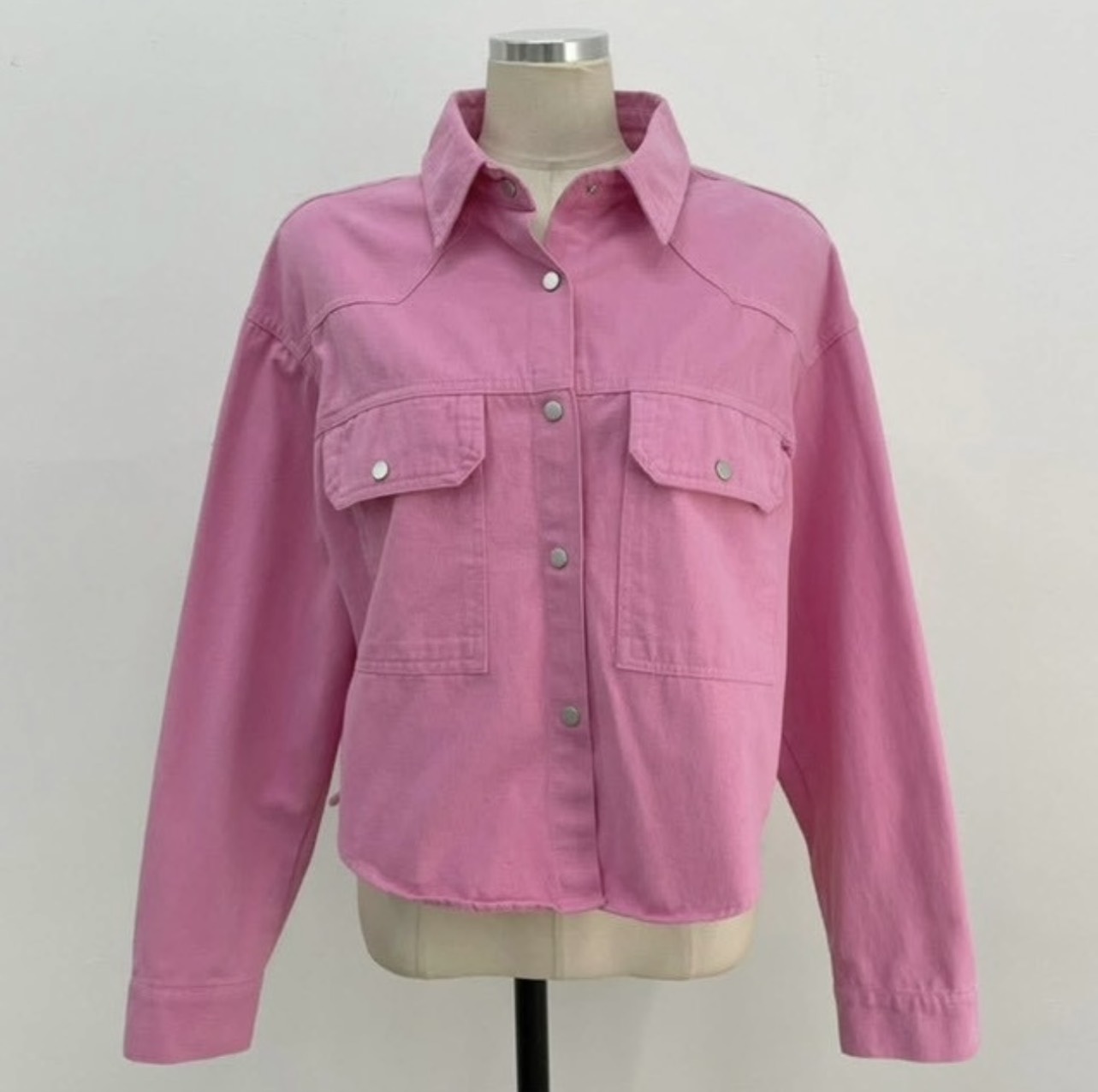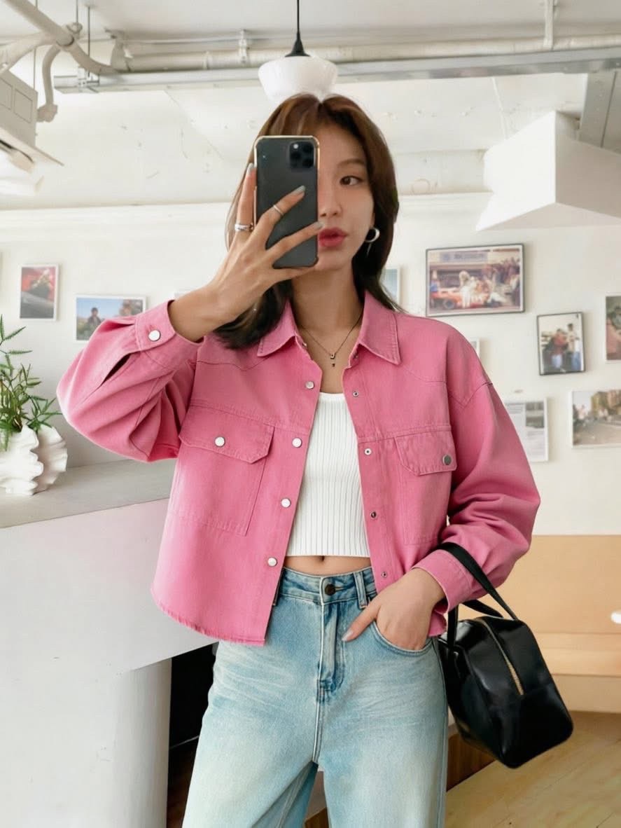 短版的長度剛好落在骨盆附近,能夠優化身材比例,視覺上讓腿部更修長 前方設有兩個標誌性的大口袋,增加了層次感與視覺重點。車縫線勾勒出的輪廓感,讓原本平淡的布料多了幾分挺括與俐落 挺度足夠,既可以當作襯衫單穿,也非常適合作為薄外套使用