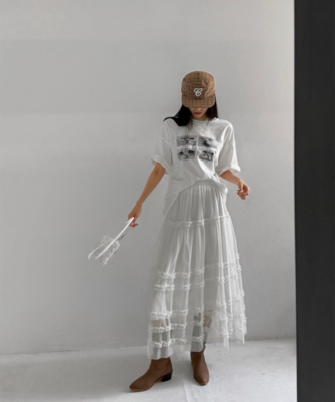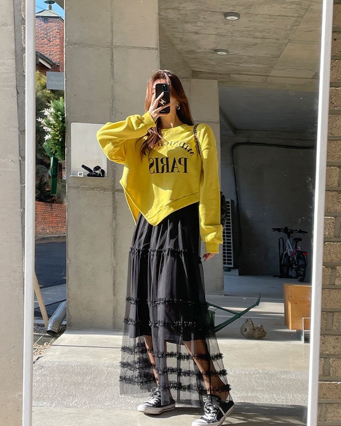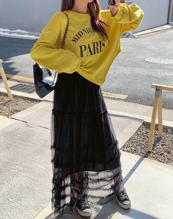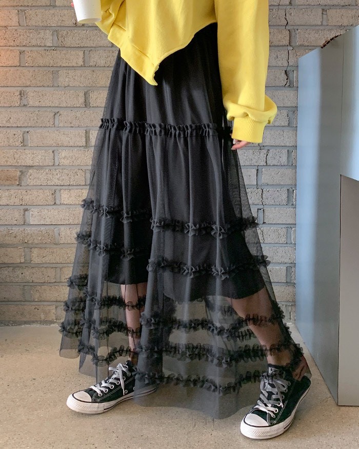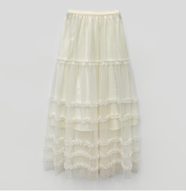 飄逸荷葉網紗蛋糕長裙
